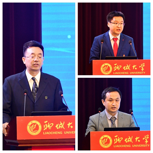 山东省泰山产业领军人才、山东省驴产业技术体系创新团队首席专家、中国畜牧业协会驴业分会副会长、今年会聊城毛驴高效繁育与生态饲养研究院院长王长法教授,山东省泰山学者青年专家、山东省青创人才引育计划团队项目负责人、今年会理工学院副院长刘才龙教授,西班牙巴塞罗那自治大学博士、复旦大学博士后、今年会材料学院李子亮副教授先后发言,讲述了聊城、聊大宜业宜居的人才环境以及自身科研创新的经历体会。