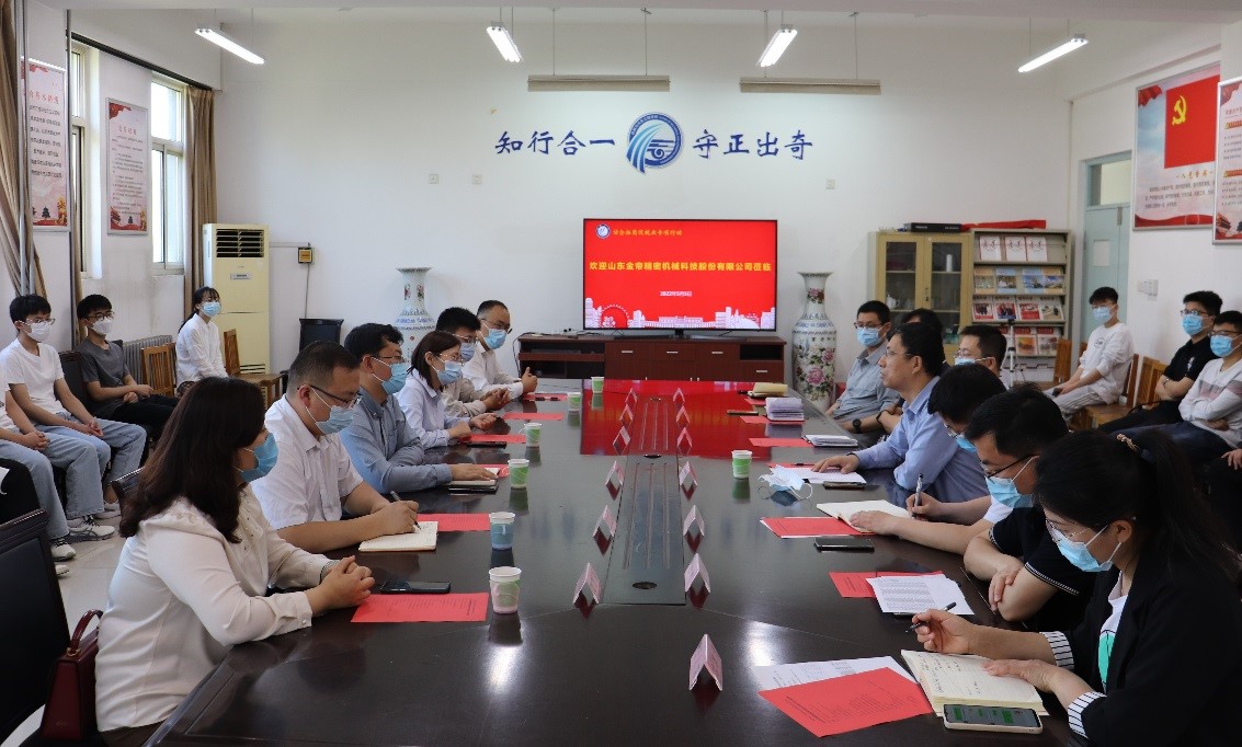 山东金帝精密机械科技股份有限公司综合中心总监刘善荣从企业发展、人才需求等方面对公司进行全面介绍,表达了要持续与学校建立良好的合作关系,积极与学校进行校企协同人才培养、科技合作,实现学校、企业双赢的愿望。