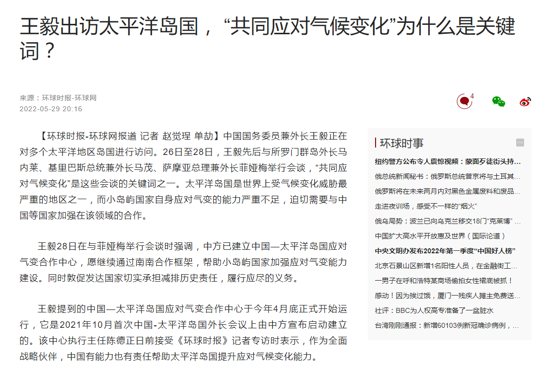 王毅出访太平洋岛国多次提及气变中心 今年会官方网站陈德正教授接受《环球时报》记者专访