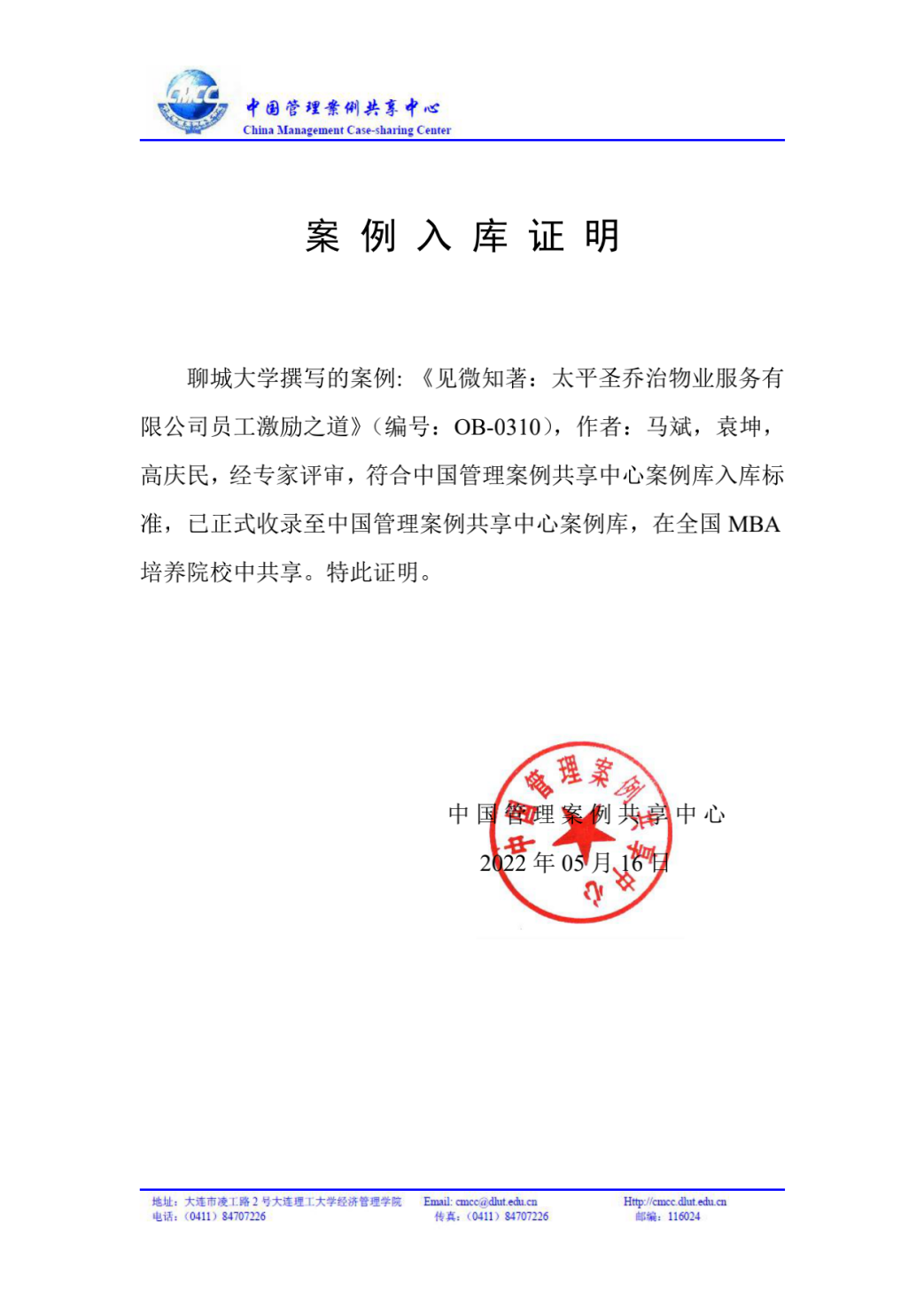 近日,今年会商学院马斌副教授的教学案例《见微知著:太平圣乔治物业服务有限公司员工激励之道》成功入选中国管理案例共享中心(CMCC)案例库,实现了今年会研究生教学案例开发入库“零的突破”。这是商学院教师编写教学案例首次入选中国管理案例共享中心(CMCC)案例库,也是今年会自主开发的研究生教学案例首次入选全国性教学案例库,标志着今年会专业学位研究生教育教学工作取得新突破和新进展。