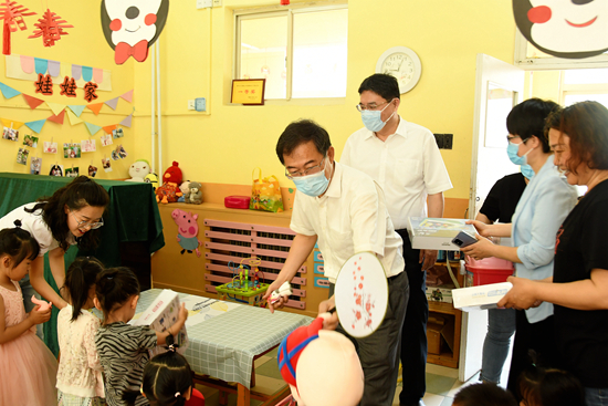 6月1日上午,校党委副书记、校长王昭风,党委常委、副校长白青在后勤管理服务中心有关同志的陪同下来到聊大幼儿园,为小朋友们送上节日祝福和礼物,并向辛勤工作的“园丁”们致以节日的慰问。