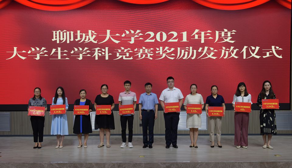 启动仪式后,学校现场举行2021年度大学生学科竞赛奖励发放仪式,赵明吉代表学校向物理科学与信息工程学院、机械与汽车工程学院等19个受奖励学院表示祝贺并颁发奖牌。