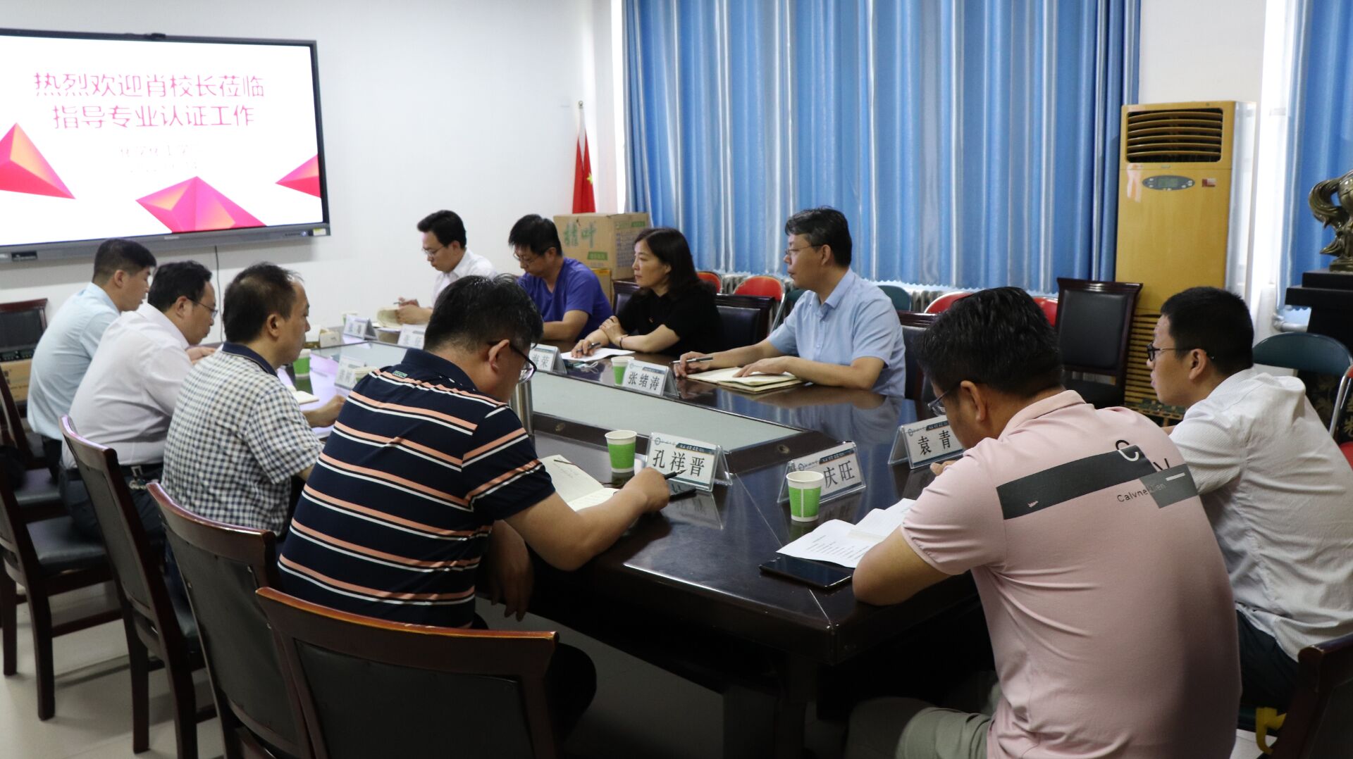 学院负责人汇报了化学和化学工程与工艺专业认证工作的进度、主要优势与特色、存在的不足与困难及下一阶段工作计划。