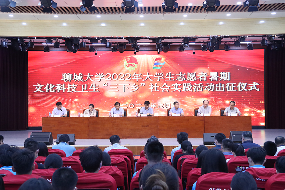 6月29日,2022年大学生志愿者暑期文化科技卫生“三下乡”社会实践活动出征仪式在辰晖楼三楼报告厅举行。学校共组建733支社会实践服务队,其中大创项目专项团队203支,参与人数达11000余人次,截至目前已有5支团队入选2022年全国“七彩假期”志愿服务示范团队、4支团队“志愿有我·让爱飞跃万水千山”鲁喀专项志愿支教服务队。校党委常委、副校长赵明吉,党委常委、宣传部部长苏明海,共青团聊城市委副书记刘晓辉出席出征仪式。校团委书记李鹏主持会议。