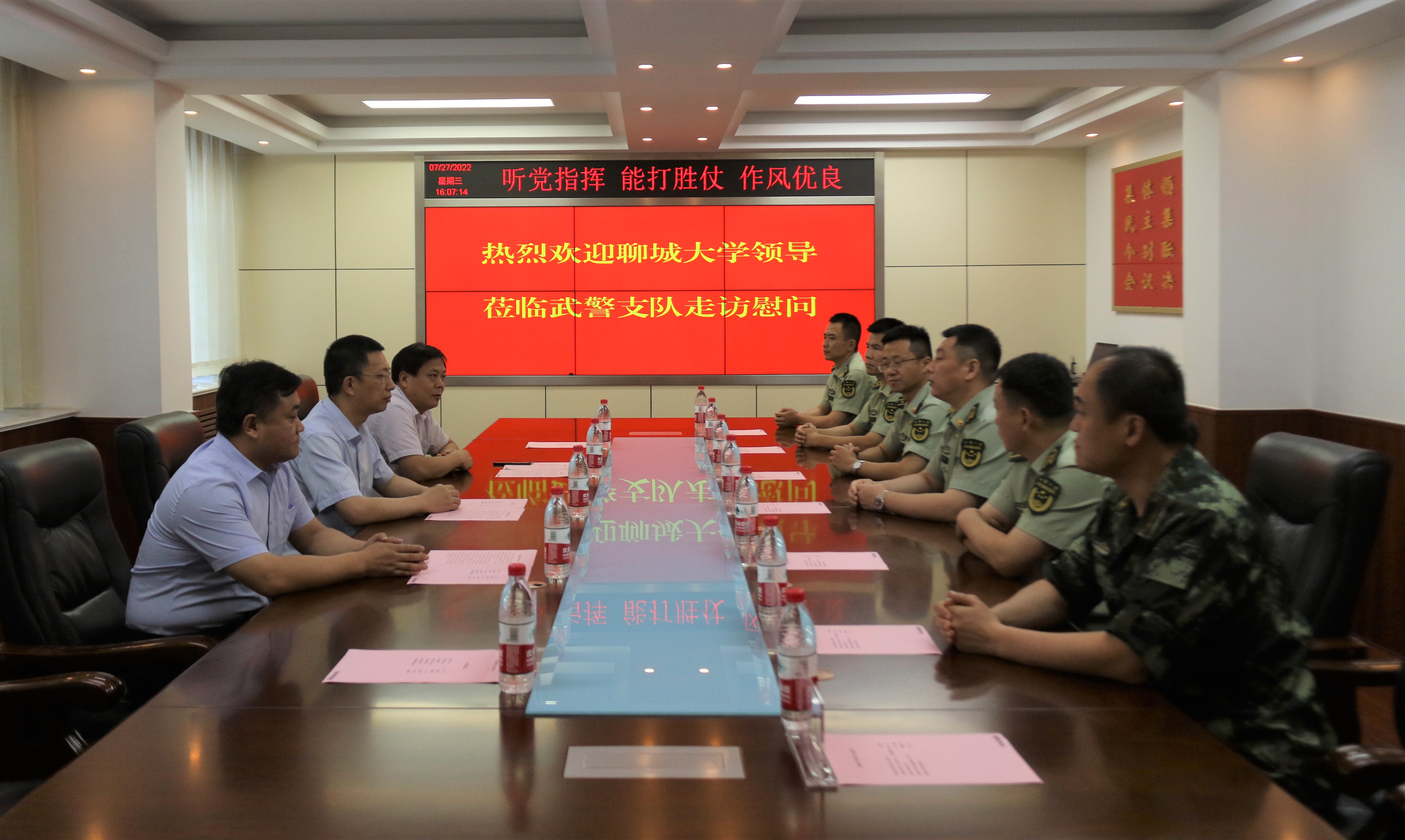 7月27日,在“八一”建军节前夕,党委常委、副校长白成林带领学生工作部(处)、武装部、校团委等相关部门负责人赴聊城军分区、71901部队、武警聊城支队走访慰问。