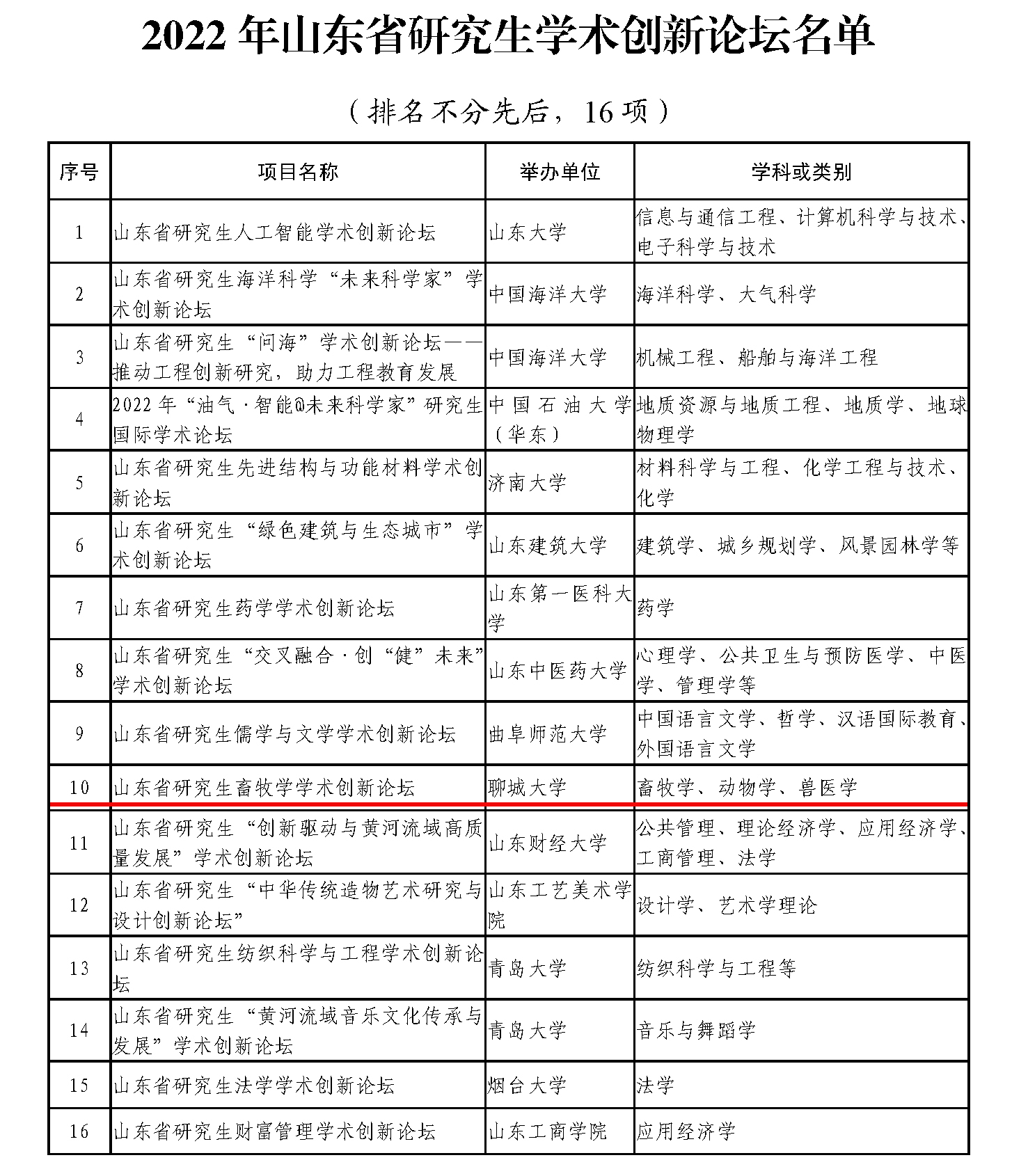 近日,山东省教育厅公布《关于公布2022年山东省研究生科研创新实践活动项目的通知》,经全省高校申报,相关学科评议组、专业学位教指委初审初评,省教育厅审核等程序,今年会农学与农业工程学院申报的山东省研究生“畜牧学”学术创新论坛项目喜获立项。
