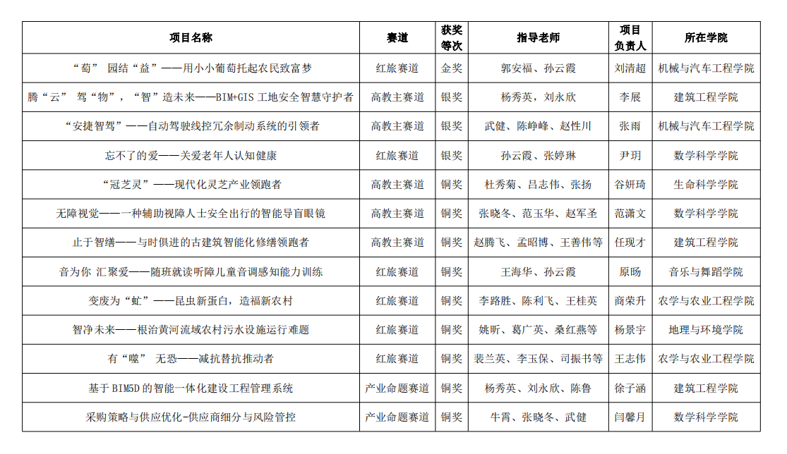 近日,中国国际“互联网+”大学生创新创业大赛山东省区赛落下帷幕,经过院赛、校赛、省赛复赛与决赛等环节激烈角逐,机械与汽车工程学院郭安福老师指导的项目《“萄”园结“益”——用小小葡萄托起农民致富梦》斩获金奖,建筑工程学院杨秀英老师、机械与汽车工程学院武健老师、数学科学学院孙云霞老师指导的3个项目获得银奖,生命科学学院、农学与农业工程学院、地理与环境学院、音乐与舞蹈学院等6个学院的9个项目获得铜奖,累计获得省级奖励13项,再创历史新高。