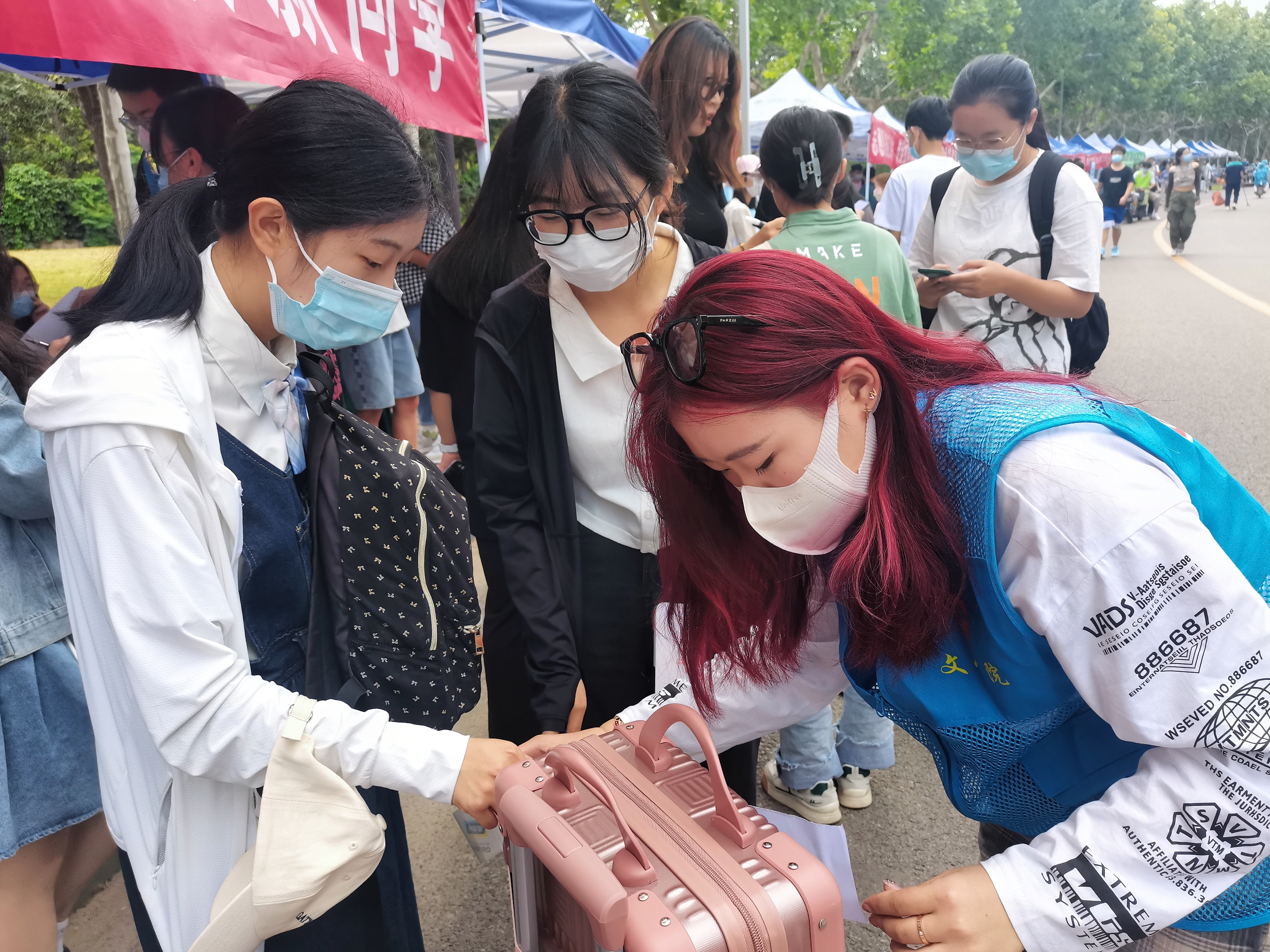 各学院迎新工作站特色纷呈,有的学院为新生准备了读书目录、防疫包和校园地图,方便新生进一步了解学校和所学专业;有的学院设置了学科特色展区和优秀学子风采板,有助于新生进一步勾勒大学四年的发展规划。部分学院还为新生和志愿者发放了印有本学院标识的医用口罩,帮助新生辨认所在学院的同时也在人来人往的校园里形成了一道别具特色的风景线。新生刘丽岩表示,“报完到‘收获颇丰’,下一步将蓄势待发,努力朝着考研的目标而努力。”