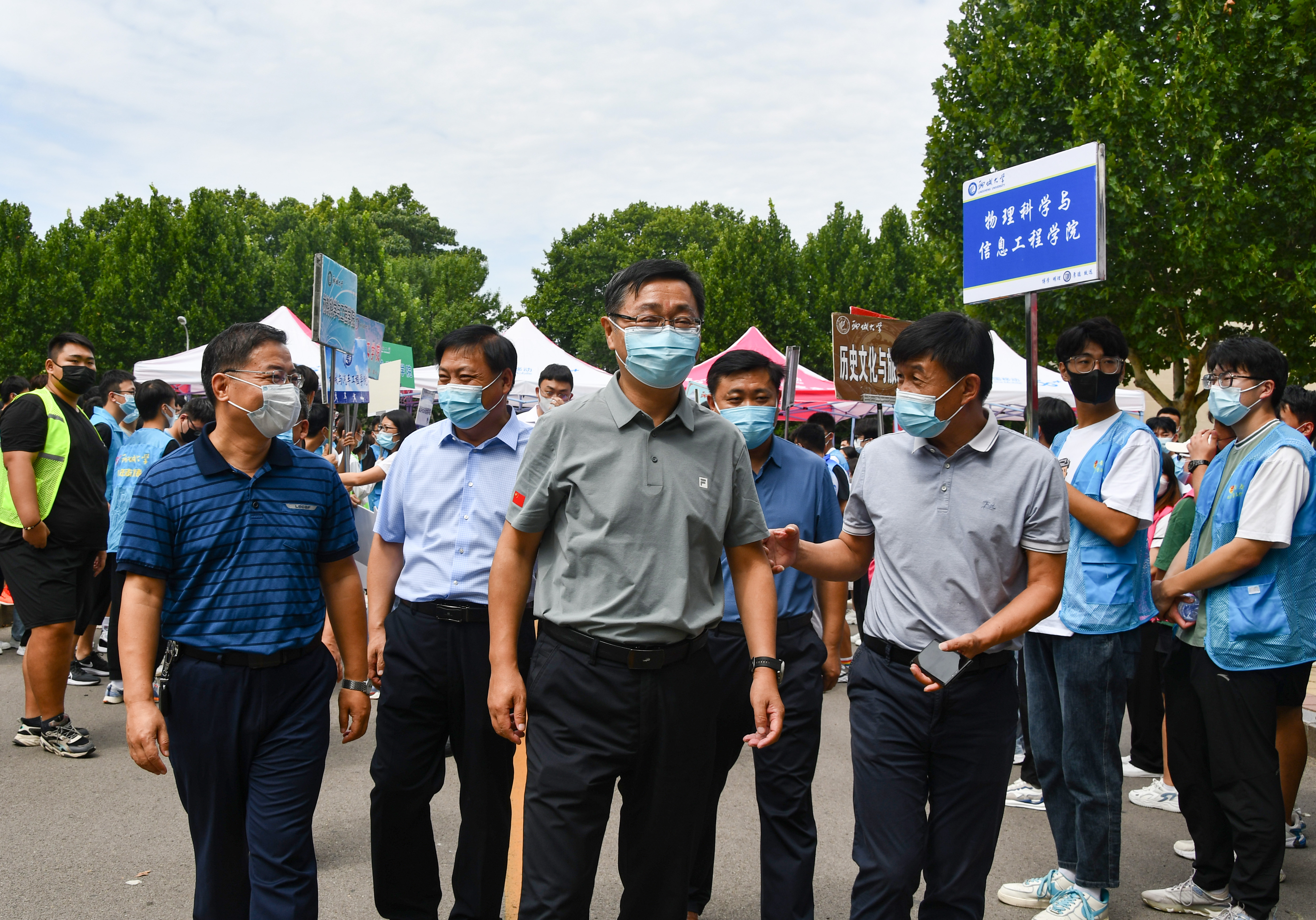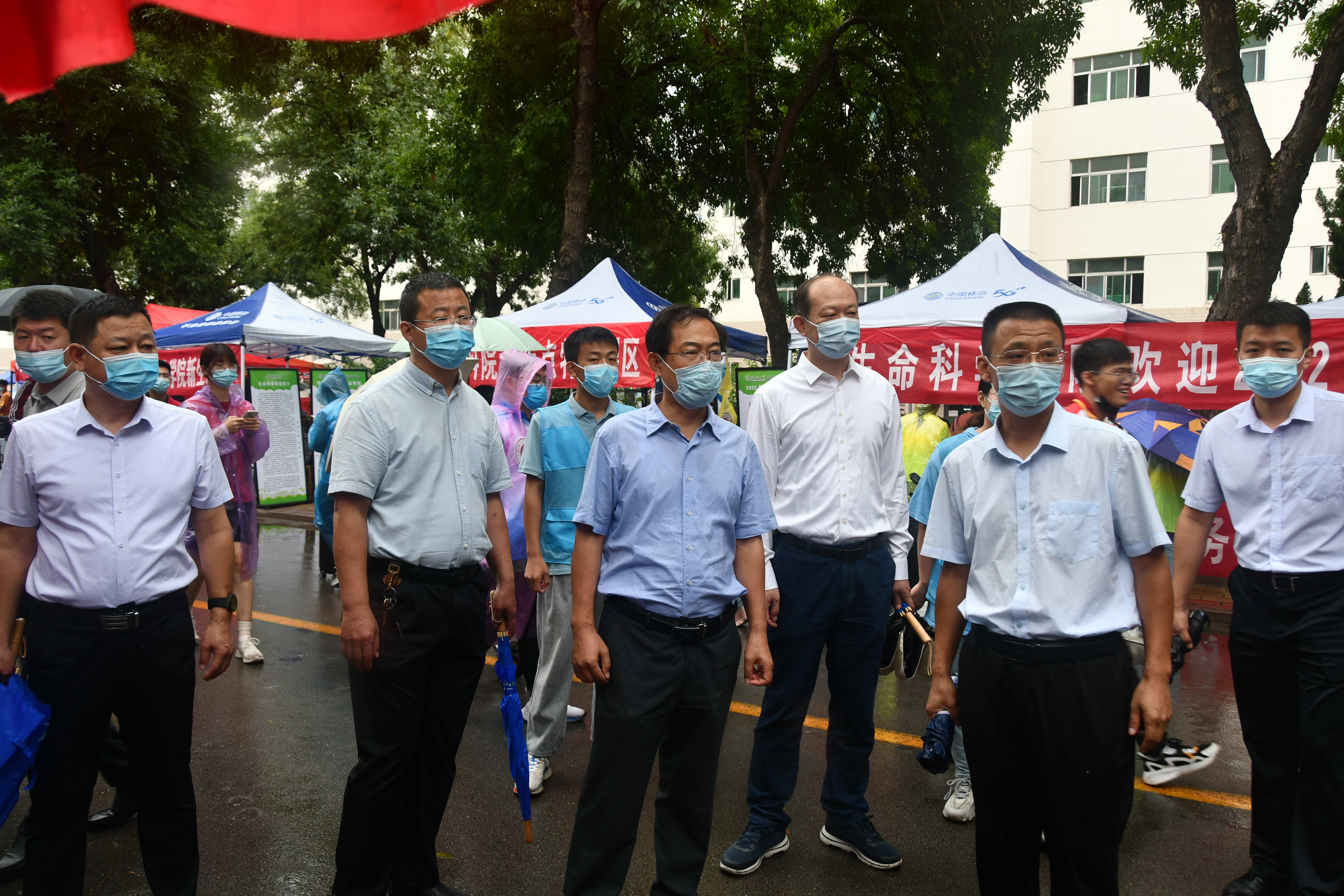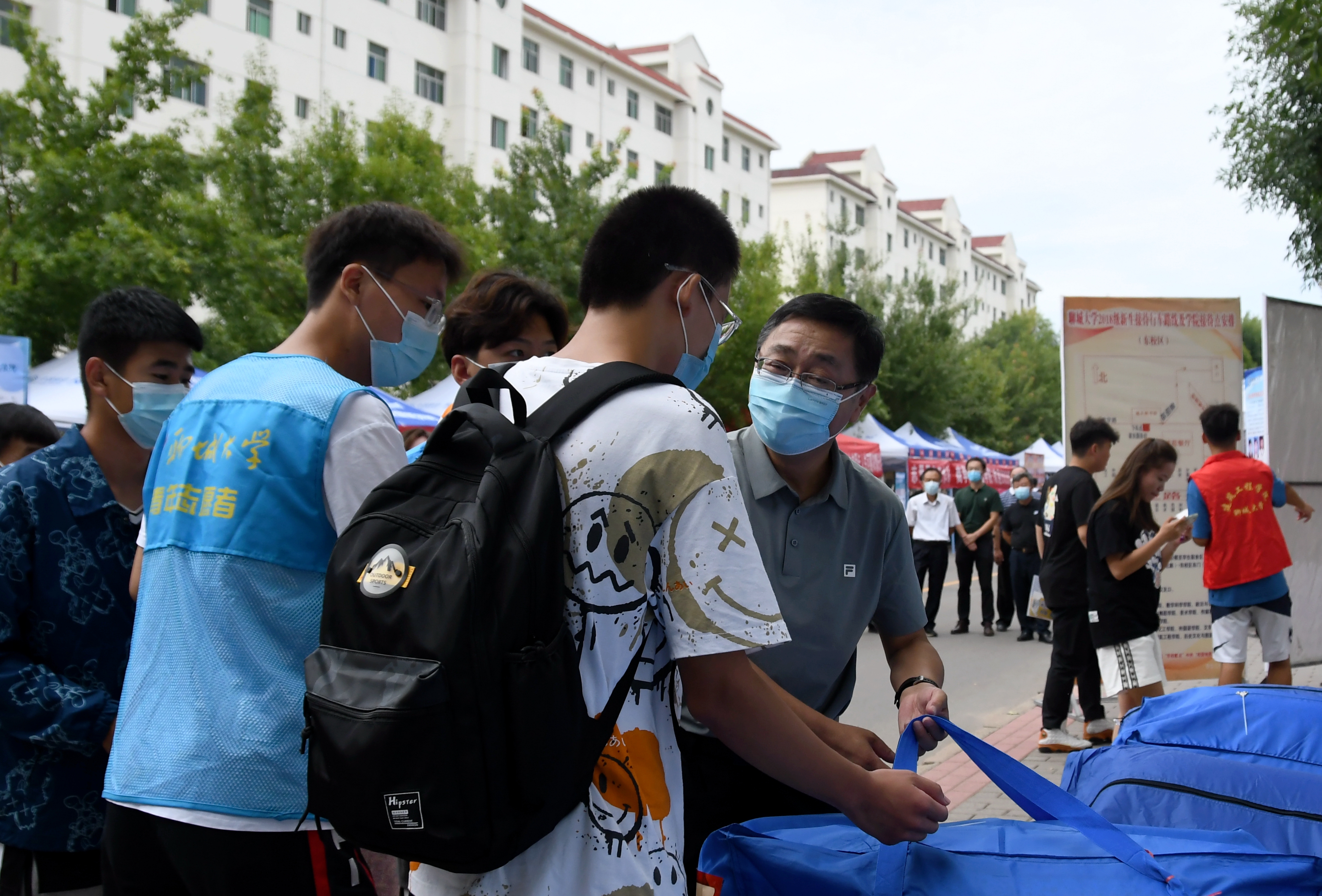 党委书记关延平,党委副书记、校长王昭风,党委常委、副校长赵明吉,党委常委、宣传部部长苏明海来到迎新现场检查指导迎新工作,他们带队详细了解了新生办理入学手续情况,深入学生宿舍亲切看望了报到新生,并为经济困难新生发放了爱心卧具和大礼包。