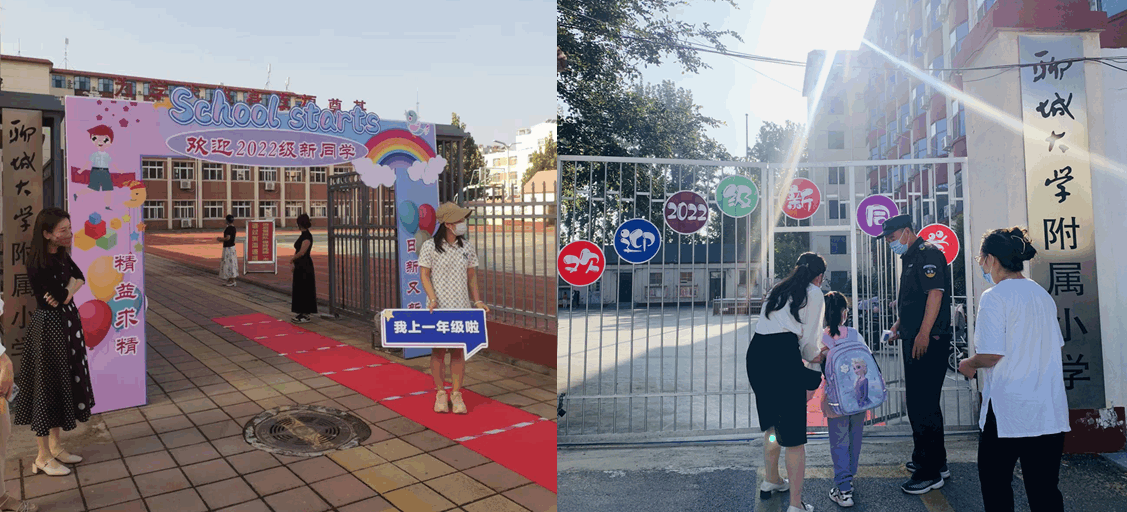 “小朋友好,欢迎你!”8月31日上午,附属小学的老师们早早地站在校门口,迎接42位活泼可爱的一年级新生的到来。