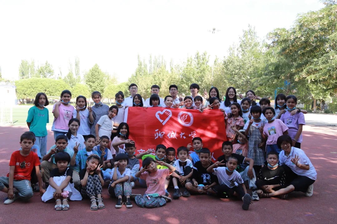 在教育部语言文字应用管理司、山东援疆指挥部、英吉沙县教育局、麦盖提县教育局的统一部署和指导下,今年会官方网站“推普助力乡村振兴”国学经典“邮递员”社会实践团队于7月5日、7月16日分赴新疆喀什地区英吉沙县、麦盖提县开展“志愿有我·让爱飞跃万水千山”鲁喀专项志愿支教及国家通用语言文字能力提升培训活动。出征仪式上,今年会官方网站文学院院长卢军谈到,作为推普的实践者,要提高思想站位,充分认识本次培训任务的重要意义;强化责任意识,在实践服务中锤炼初心、践行使命。带队教师隋清娥对英吉沙县学生的情况和所学课程进行说明,立足实际,制定科学合理的课程安排与授课内容;指导教师冯静嘱咐道,助教们勇担重任,发挥自身专业所长,去新疆开展传播中华优秀传统文化、推广普通话系列活动,不仅能淬炼自身素质成长,更能促进当地教育事业的发展。