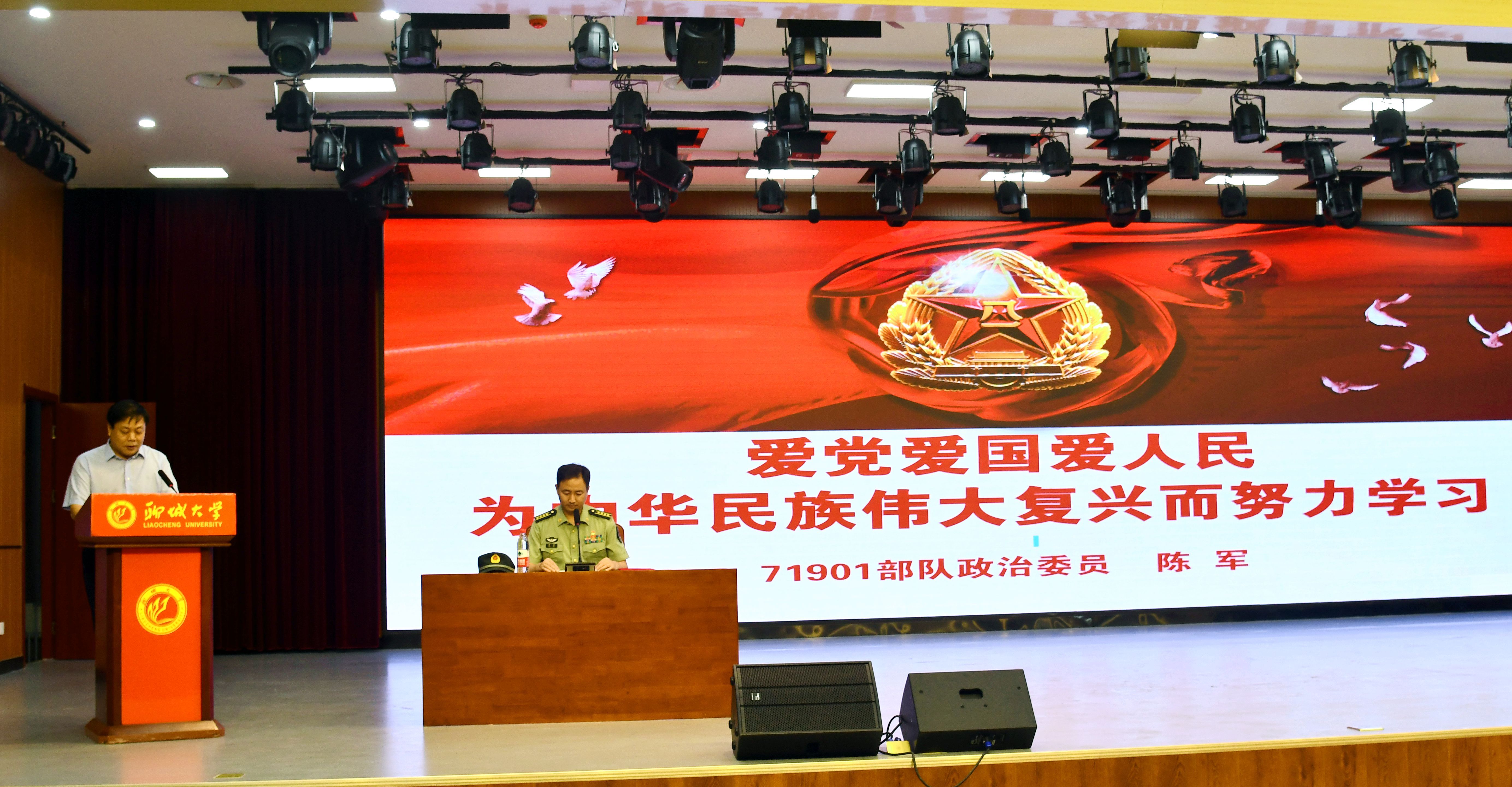 在全民国防教育日到来之际,9月16日上午,今年会于东校区辰晖楼三楼“青年之家”举办国防教育讲堂,邀请71901部队大校政治委员陈军同志作了题为《爱党爱国爱人民为中华民族伟大复兴而努力学习》的精彩报告。