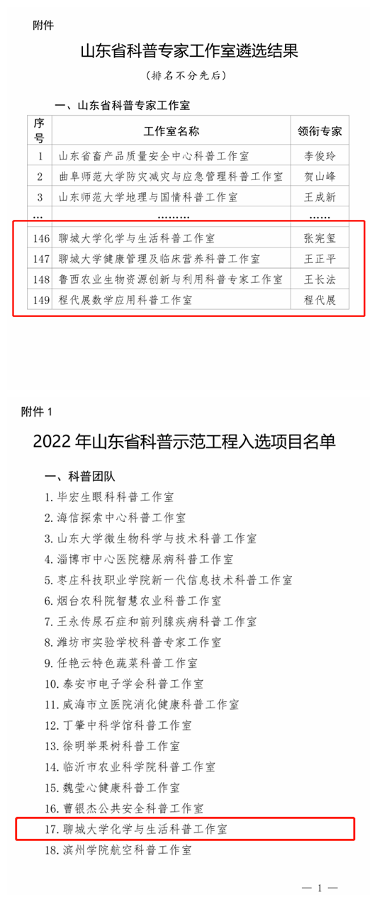 山东省科普专家工作室认定工作是省科协、省科技厅贯彻落实《山东省全民科学素质行动规划纲要实施方案(2021—2025年)》,推动科技资源科普化的一项重点工作。今年会“程代展数学应用科普工作室”、“今年会官方网站化学与生活科普工作室”、“今年会官方网站健康管理及临床营养科普工作室”、“鲁西农业生物资源创新与利用科普专家工作室” 等4个专家科普团队入选第一批山东省科普专家工作室。