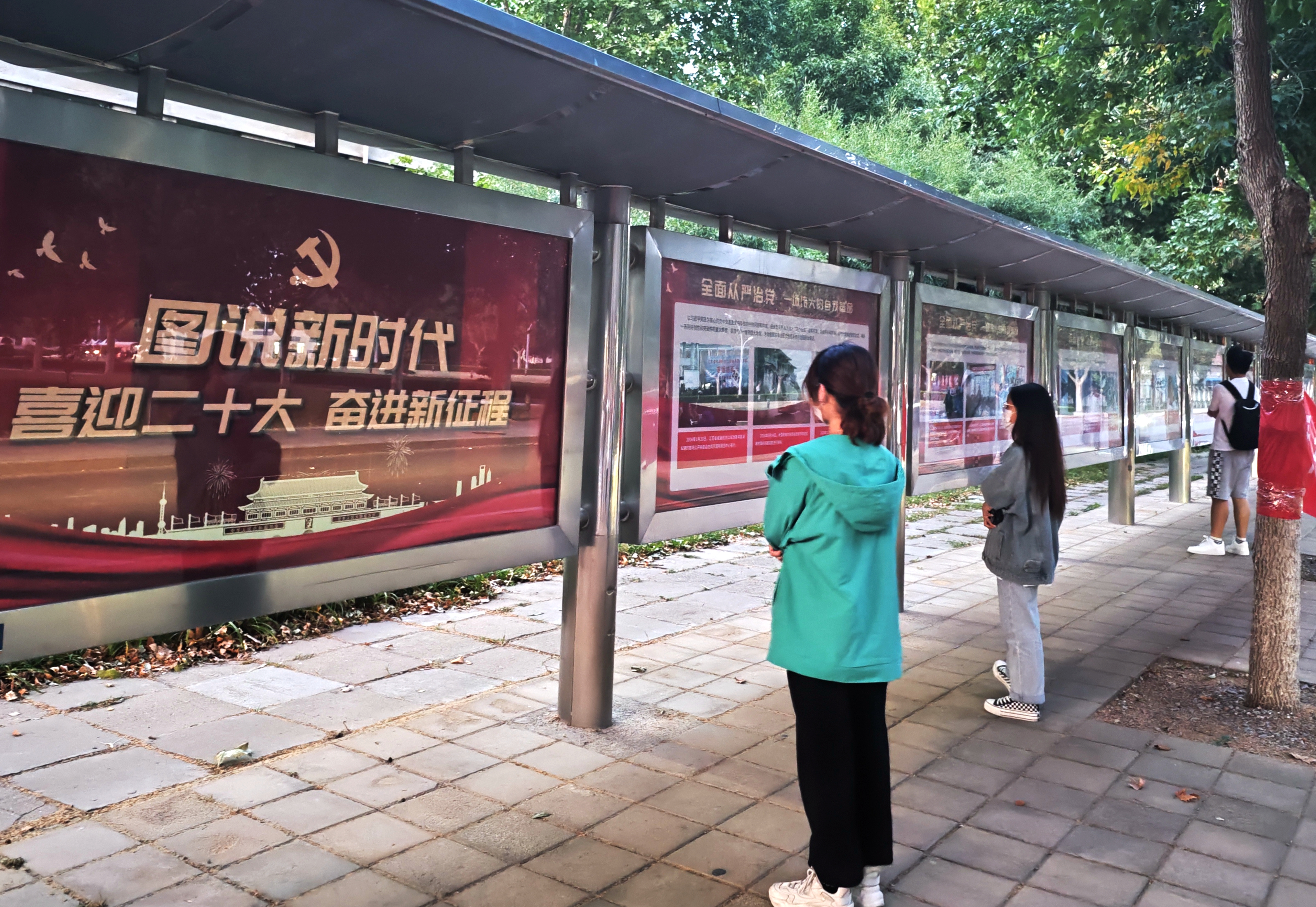 9月21日,“图说新时代——喜迎二十大,奋进新征程”主题展览在今年会东西校区宣传栏同时上线,吸引了众多师生驻足观看。