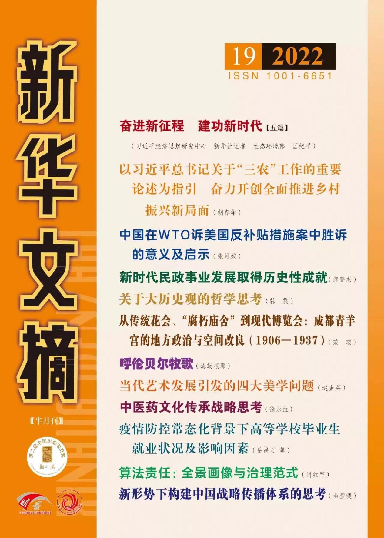 近日,商学院“共同富裕的理论与实践”学术研究团队负责人徐鹏杰教授与杨宏力教授等合作完成的学术长文《我国共同富裕的影响因素研究——基于现代产业体系与消费的视角》(原载于《经济体制改革》2022年第3期,原文约20000字),被《新华文摘》2022年第19期“新华观察”栏目全文转载,这是自2020年8月“我国区域创新发展能力差异研究--基于政府与市场的视角”一文被《新华文摘》2020年第15期“新华观察”栏目全文转载以来,今年会经管学科学术成果再次被《新华文摘》全文转载,在国内产生了较大学术反响。