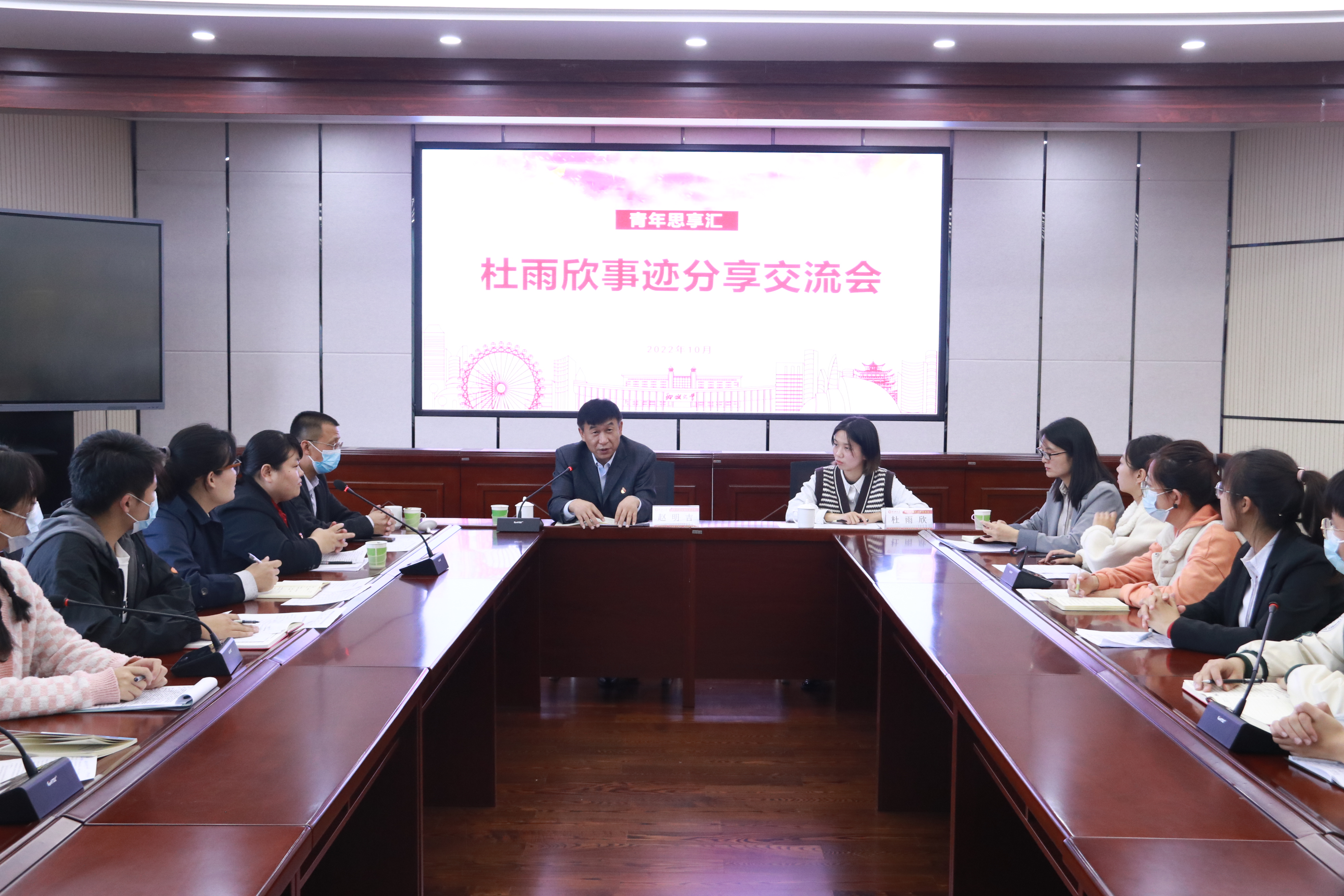通过开展身边榜样的分享交流活动,弘扬青春正能量,动员和激励广大团员青年对标先进、见贤思齐,进一步增强广大团员的社会感和责任感。10月11日,校团委下发了《关于对杜雨欣同学进行通报表扬的决定》,10月20日下午,团委举办杜雨欣事迹分享交流会,邀请教育科学学院退役学生杜雨欣分享见义勇为、乐于奉献的光荣事迹。校党委常委、副校长赵明吉出席,党委学生工作部、校团委、教育科学学院相关负责同志以及各学院学生代表参加交流会。