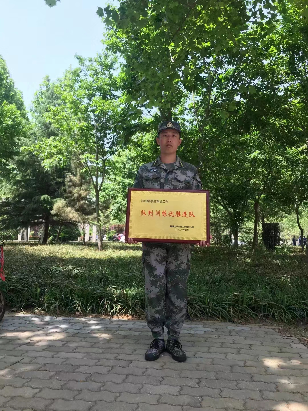 在校期间他积极参与学生军训工作,指导的连队在2020级学生军训中荣获“队列训练优胜连队”称号。
