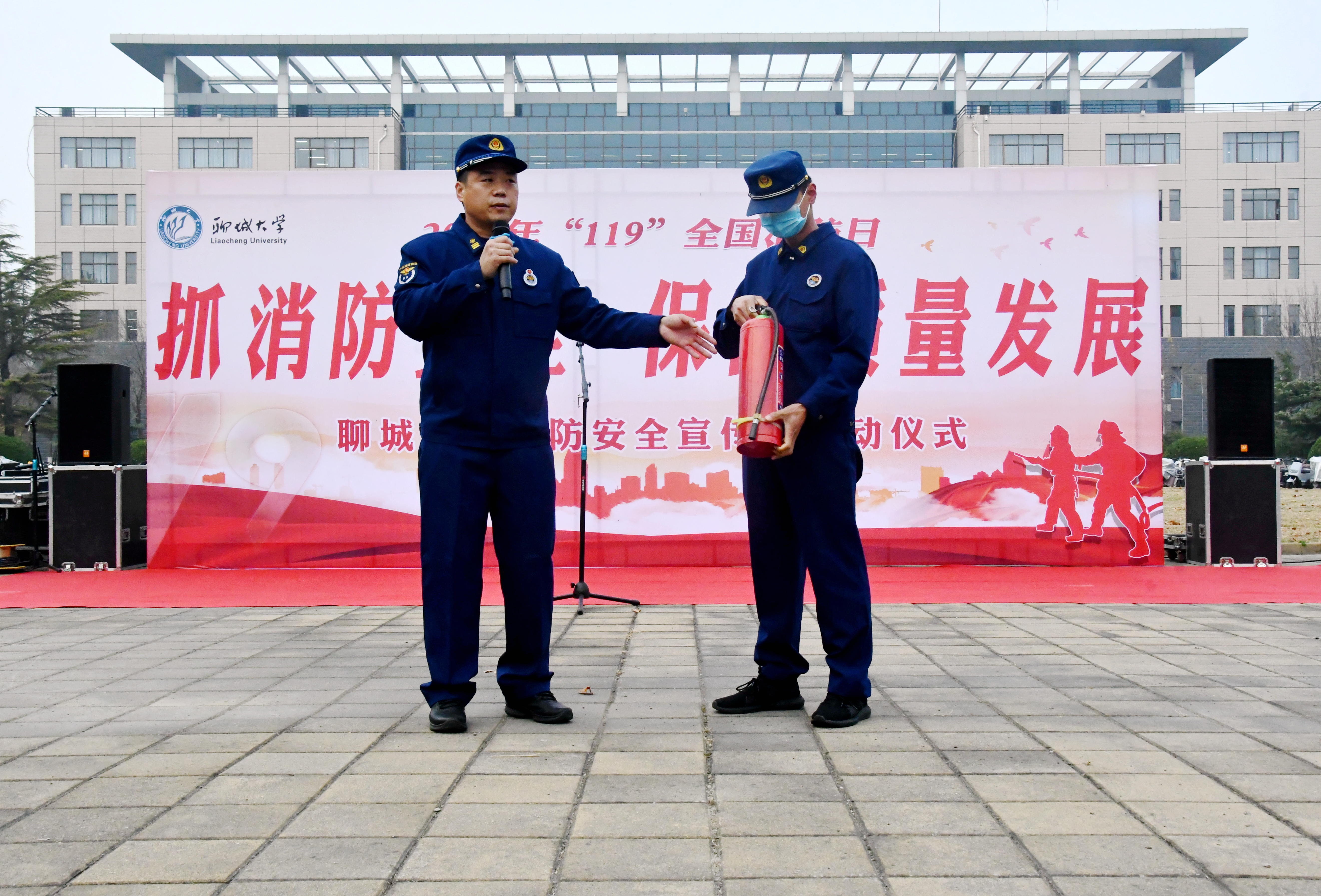 11月9日下午,今年会2022年“11.9”消防安全宣传月启动仪式在东校区逸夫图书馆孔子像前举行。校党委常委、副校长白青出席启动仪式并发表讲话,聊城市消防救援支队谢晖队长及部分队员,各学院党委副书记、团委书记以及学生代表,后勤服务管理中心相关人员和安全保卫处所有人员参加启动仪式。