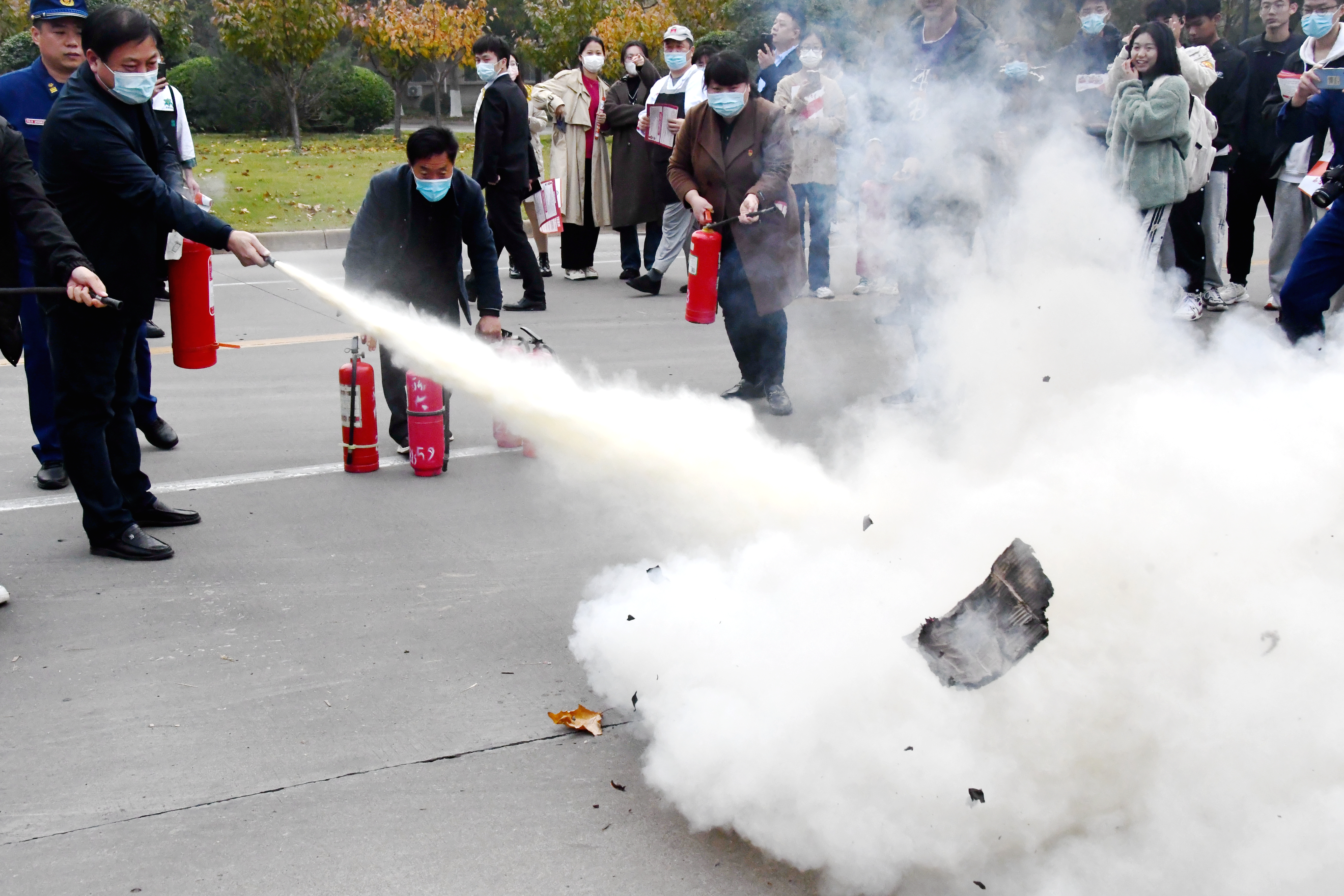 启动仪式上,谢晖结合消防“四个能力”和“四懂四会”向与会人员普及了消防安全知识,并详细讲解了干粉灭火器、消防水带水枪、消防栓等消防器材的使用方法。部分师生在消防员的指导下,开展了使用灭火器灭火的实战演练。