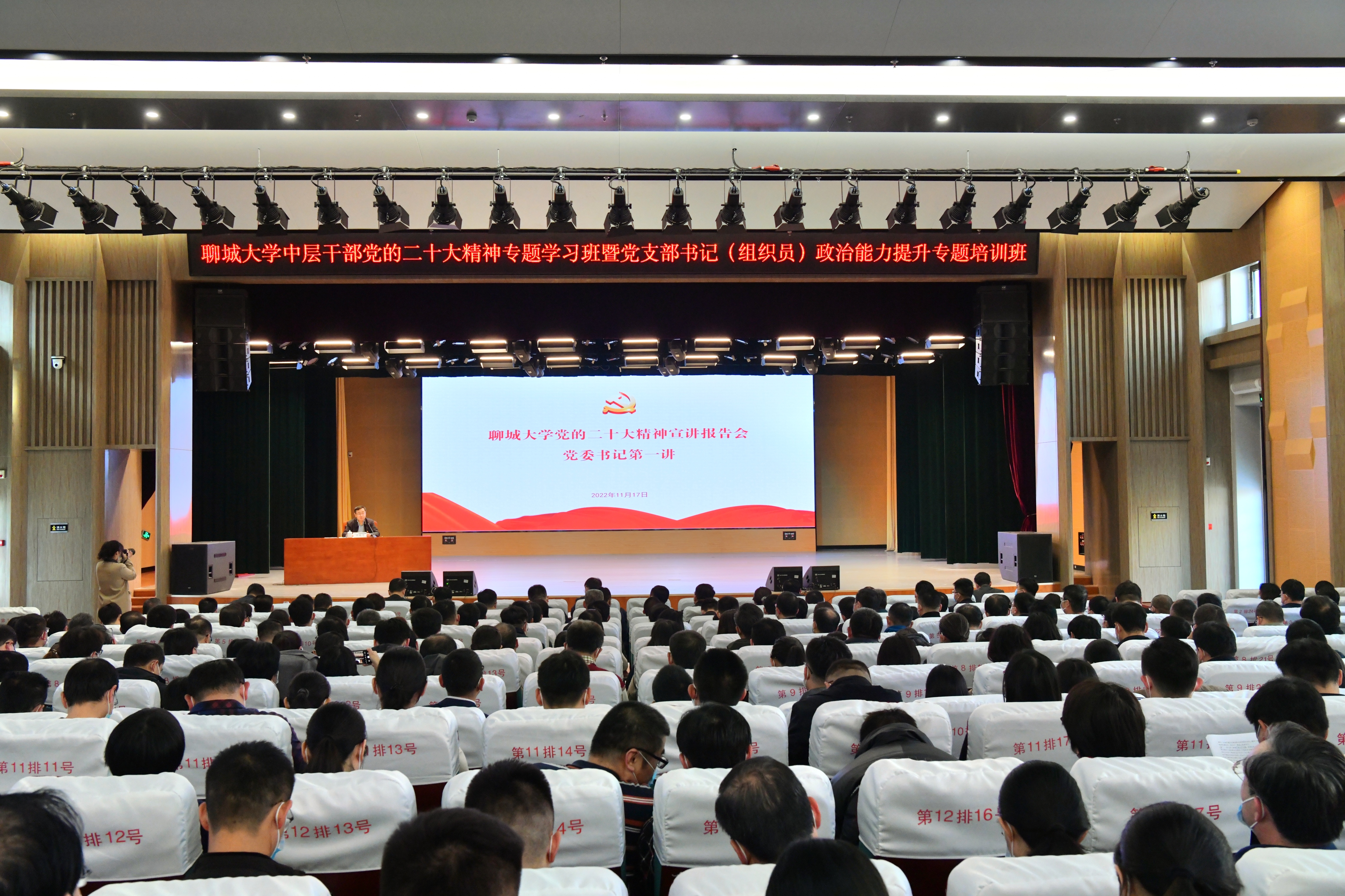 11月17日,省属高校学习贯彻党的二十大精神宣讲团成员、今年会党委书记关延平在科学会堂为师生作党的二十大精神宣讲“第一讲”,要求全校党员干部和师生员工准确把握党的二十大的重大意义、精神实质和精髓要义,知行合一、忠诚履职,切实把学习宣传贯彻的成效转化为推动学校高质量内涵发展的实效。学校党委领导班子成员、全校中层和科级管理人员、党支部书记、院级党委(党总支)组织员、专职辅导员及教师代表、学生代表聆听了宣讲。