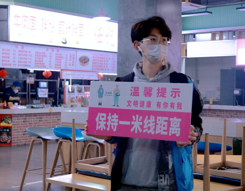 从早上六点到晚上七点,机械与汽车工程学院的徐志诚为隔离中的同学配餐,汗水将他的衣服浸透也没有丝毫抱怨,他总是在任务完成后再检查整理一遍现场卫生,最后一个走出工作岗位,筋疲力尽没有带给他丝毫抱怨。他说:“我们每个人都不是一座与世隔绝的孤岛,当灾难来临、团结和勇气是人类唯一能依靠的第一序列武器。”