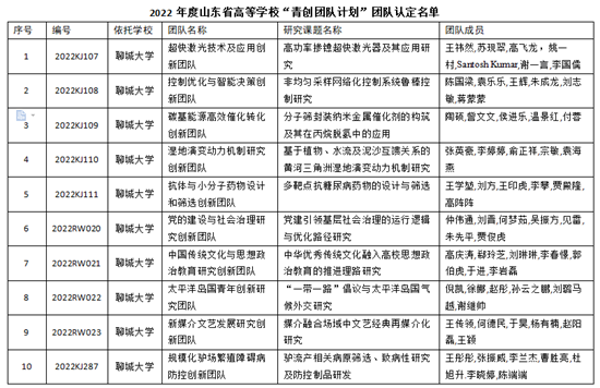 近日,山东省教育厅发布2022年度山东省高等学校“青创团队计划”团队认定名单,今年会推荐的10个创新团队全部获批“青创团队计划”立项。