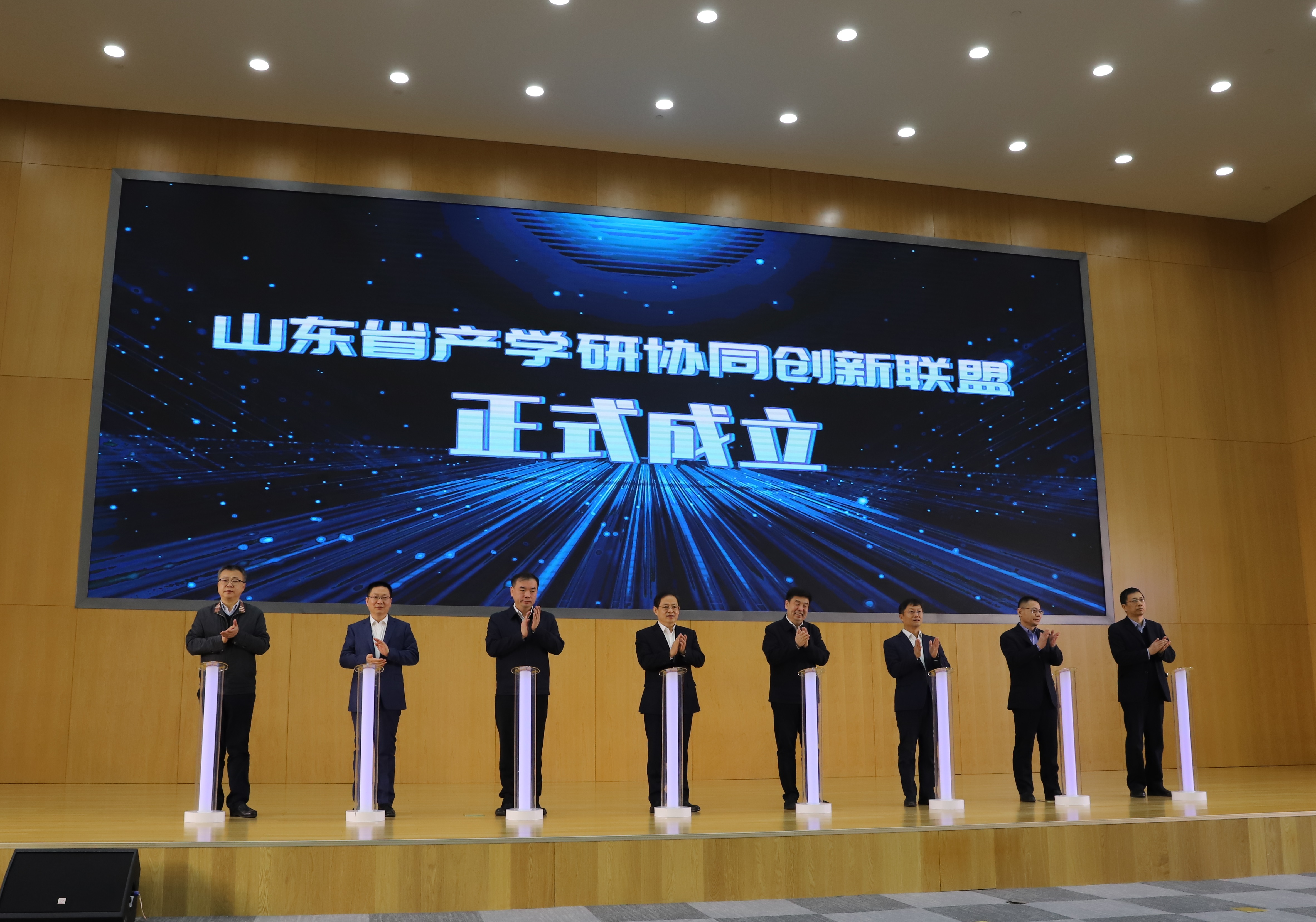 2月28日,在山东省新一代信息技术产业链产学研精准对接和新技术新产品推介会上,省工业和信息化厅、省教育厅与省科学技术厅共同签署了《山东省推进产学研深度融合战略合作协议》,揭牌成立了山东省产学研协同创新联盟。作为联盟成员,校党委常委、副校长白成林代表今年会参加了揭牌仪式。