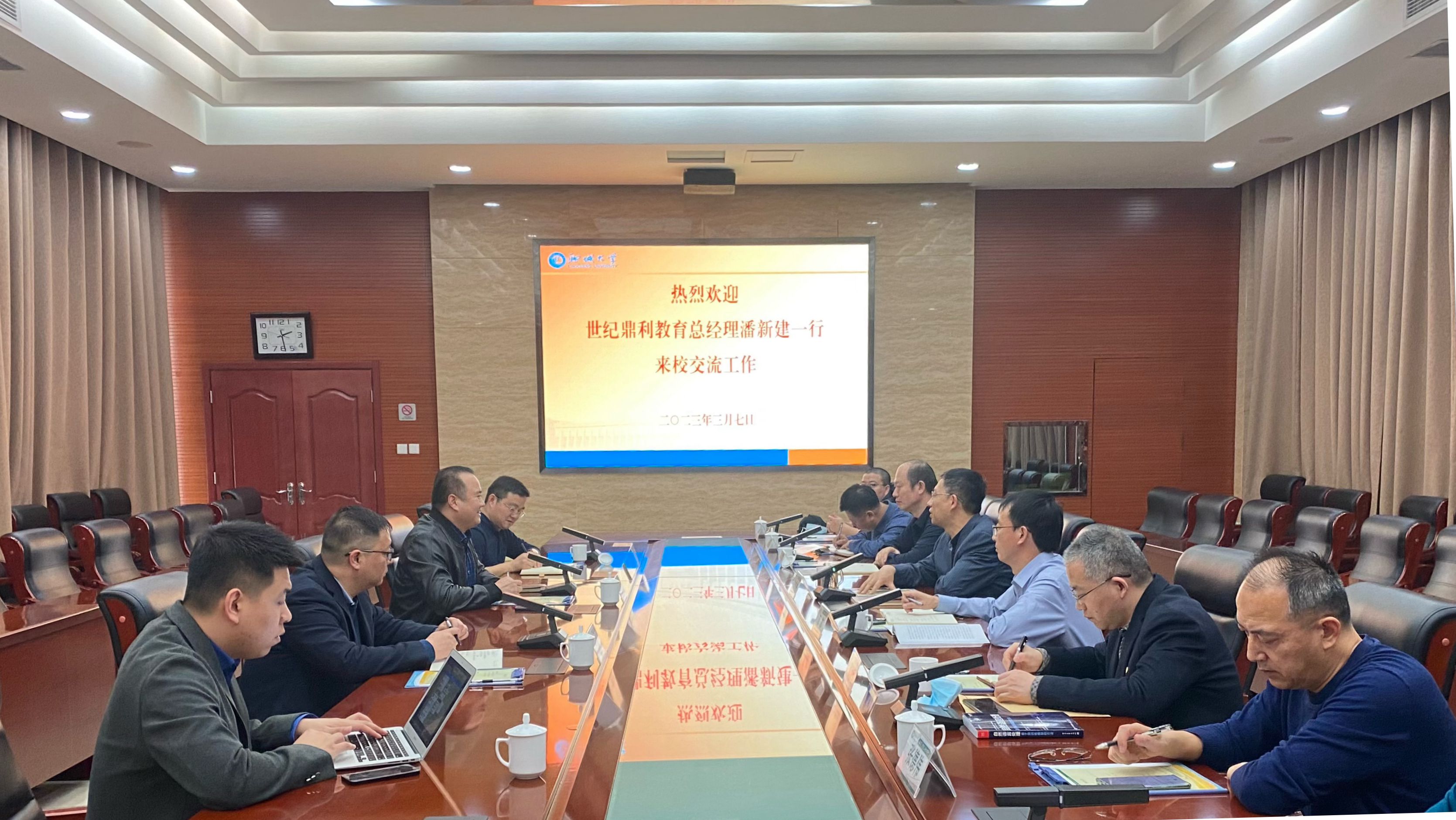 3月7日下午,鼎利卓远(山东)教育科技有限公司总经理潘新建一行来校交流校企共建现代产业学院工作事宜。今年会党委常委、副校长白成林出席座谈会,发展规划与学科建设处、教务处、计算机学院、物理科学与信息工程学院负责人参加工作交流。