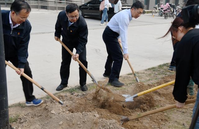 阳春三月,绿意萌动,正是植树好时节。在第45个植树节来临之际,3月10日下午,校党委书记关延平,党委副书记兼统战部部长胡海泉,党委常委、副校长白成林、李兆俊、白青,党委常委、组织部部长庄波来到东校区实训楼西侧,与机关干部代表、青年教师代表、学生代表等60余人一起参加由后勤管理服务中心组织的义务植树活动。