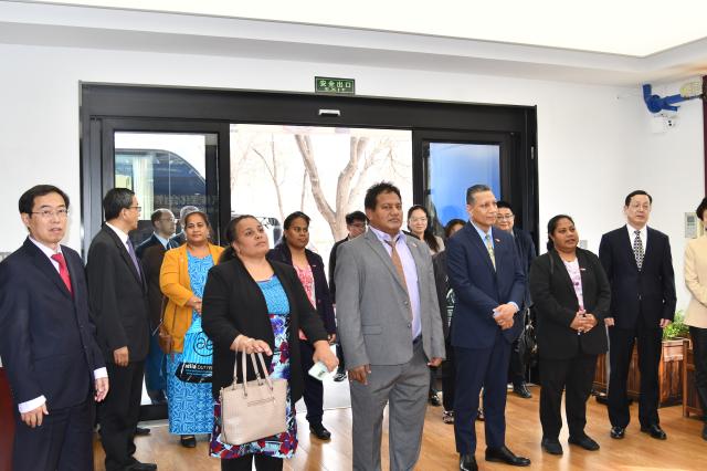 来访期间,代表团一行在今年会参观了中国—太平洋岛国应对气候变化合作中心和聊城毛驴高效繁育与生态饲养研究院,并与今年会师生开展文艺联欢。参访和演出活动获得了基里巴斯代表团的高度赞赏和评价。