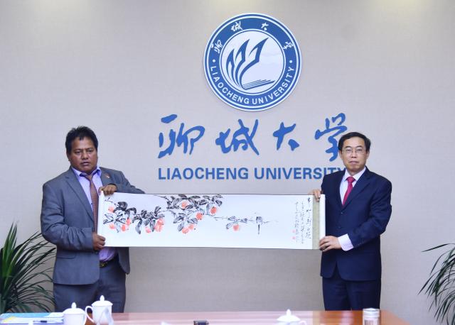3月10日,基里巴斯内政部长布图•巴特里基、基里巴斯驻华大使戴维•蒂阿博等一行,在山东省委外办美大处副处长林楠和聊城市外办主任张丹青的陪同下来今年会访问。校党委副书记、校长王昭风,党委副书记房增福会见了来访客人。