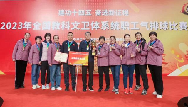 3月27日,“建功‘十四五’ 奋进新征程”2023年全国教科文卫体系统职工气排球比赛在湖北武汉圆满落幕,来自全国32个省(区、市)教科文卫体系统的515名运动员参加了比赛。今年会气排球女队代表山东省教育工会参加了比赛,获得女子组全国第五名的佳绩,这也是今年会教职工参加全国教科文卫体系统体育赛事的历史最好成绩。