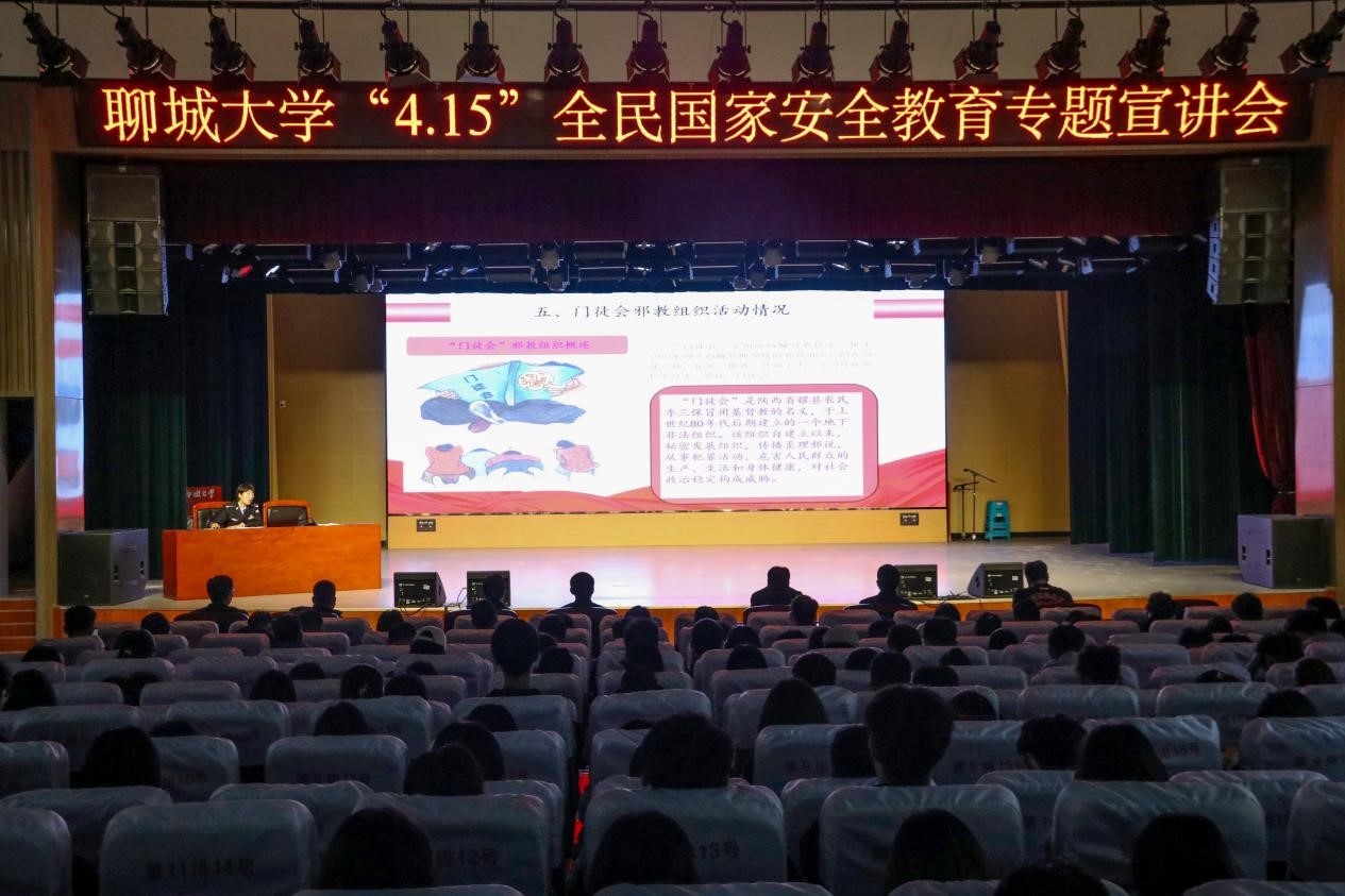 4月13日,在第八个全民国家安全教育日到来之际,由党委学生工作部、党委保卫工作部、校团委联合组织的全民国家安全教育专题宣讲会于西校区科学会堂举办。聊城市公安局二级警长张丽婷受邀以《展青春风采 担时代使命 共同维护国家安全钢铁长城》为题作主题宣讲。党委保卫工作部负责人及各学院辅导员、部分学生代表现场聆听。