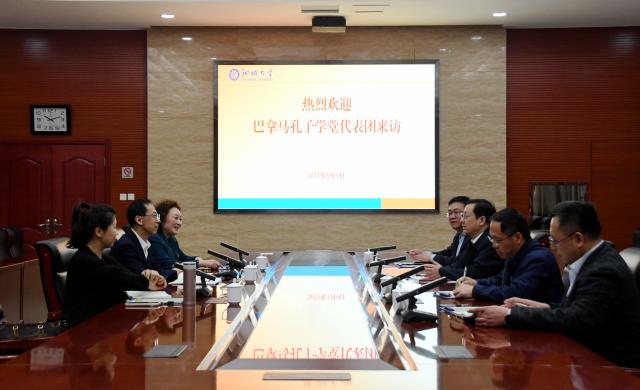 5月10日,巴拿马孔子学堂校长刘科率团来今年会访问。党委副书记房增福会见来访客人,并主持交流会谈。