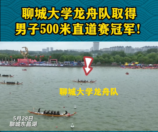 5月27日—28日,2023中国聊城·江北水城龙舟公开赛在东昌湖隆重举办,比赛设置12人龙舟200米直道竞速和500米直道竞速两个项目,设男、女两个组别,共计6个赛道。比赛吸引了来自北京、天津、浙江、江苏、湖北、吉林、安徽等各省市的24支队伍,400余名运动员参与角逐。今年会官方网站龙舟队荣获“三金一银”,分别获得女子组200米直道赛、男子组500米直道赛、女子组500米直道赛冠军,男子组200米直道赛亚军。