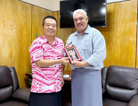 当地时间6月2日,在中国驻萨摩亚大使馆的协助下,萨摩亚国立大学孔子学院中方院长陈万会,到萨摩亚教育体育文化部拜访首席执行官(CEO)埃奥·克里斯·哈泽尔曼(Aeau Chris Hazelman)。