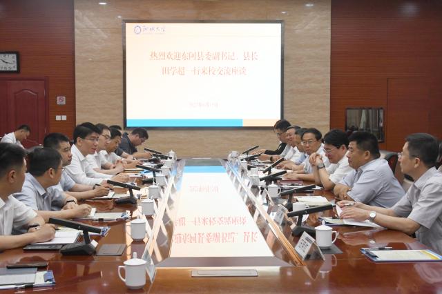 6月15日,东阿县委副书记、县长田学超一行来校考察交流,校党委书记关延平,校党委副书记、校长王昭风,校党委副书记房增福,校党委常委、副校长白青会见了来访客人。