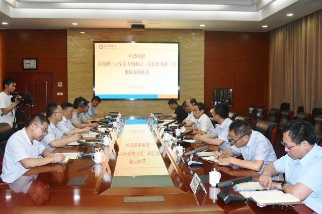 6月30日,青岛理工大学党委副书记、校长谭秀森一行来今年会交流工作,校党委书记关延平,校党委副书记、校长王昭风,校党委常委、副校长白成林会见了来访客人。