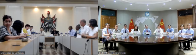 7月12日,今年会官方网站与古巴哈瓦那大学举行共建哈瓦那学院签约仪式。王昭风校长与尼卡多校长在协议书上签字,标志着两校共建中外合作办学机构开启了新篇章。签约仪式由党委副书记房增福主持,会议以网络视频会议方式进行。