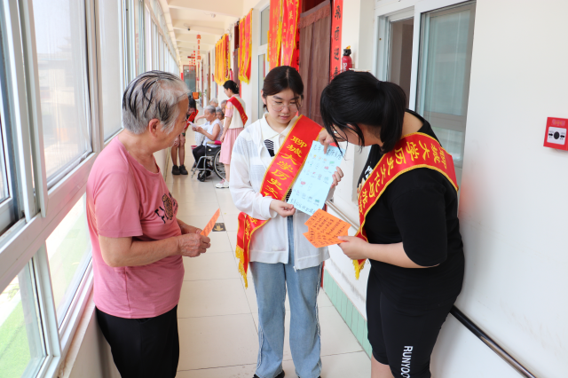 三、助困关爱帮扶。历史文化与旅游学院志愿者来到聊城市敬纳养老院,举办“合理健康饮食,弘扬助老风尚”活动,为老人讲解合理健康饮食的相关知识。物理科学与信息工程学院“金晖助老理工服务队”先后前往盛世之家等多家敬老院,开展“敬老为善,助老为乐”社会实践活动,帮助老人打扫卫生、维修电器,聆听老人过往故事。马克思主义学院笑意盈光青年服务队于济宁市高新区敬老院为老人挑选小礼物,通过唱歌、话剧、朗诵等节目表演来丰富老年人的精神文化生活。农学与农业工程学院“蒲公英”志愿服务队来到东昌府区堂邑镇高庄村困难群众家中解读国家扶贫政策,带去电风扇、肉、奶、鸡蛋等慰问品,送上温馨与温情。