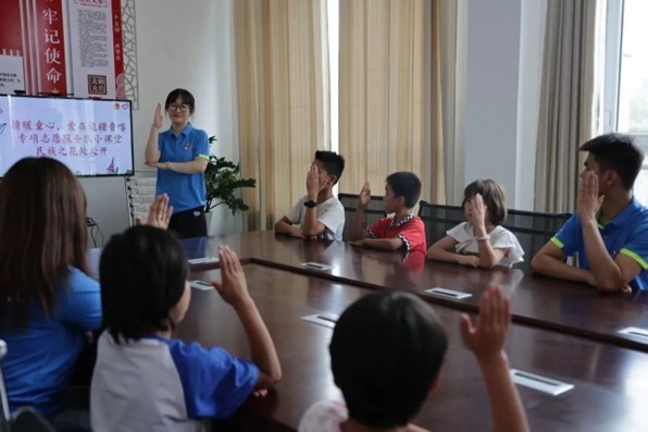 服务队把普通话推广作为稳固民族交流和交往的重要桥梁,开展假期课堂、课业辅导150场次,将培训与课堂讲授、课后辅导相结合,充分利用国家智慧教育平台、中国语言文字数字博物馆平台,开展文学阅读、经典诵读活动,帮助当地学生、群众提升国家通用语言文字使用能力。机械与汽车工程学院“情系西部,科创入疆”志愿服务队开展“萤火虫科学小课堂”,以生动有趣的小实验为切入点,营造良好的学习氛围,激发孩子们的学习兴趣和学习热情,让孩子们在动手实践中感受科学之美。美术与设计学院“疆域先锋”志愿服务队开展建军节主题美育实践教学,用书法和图画艺术展现党史、军史,让孩子领略中华艺术的独特魅力;通过成语接龙、绕口令小游戏引入国家通用语言文字教学,让孩子们在学习经典中感受中华文字的典雅优美。