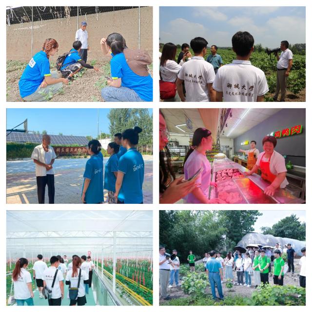 历史文化与旅游学院“文旅鸣凤”志愿服务队走进安徽省滁州市凤阳县大庙镇薛李村,调研大球盖菇生态栽培技术集成与示范项目和食用菌循环新农业模式;走进小岗智慧农业产业园,调研农产品产前、产中和产后再加工的现代农业产销体系。数学科学学院“数字助农”乡村振兴调研服务队在茌平区菜屯镇了解当地特色木材产业的加工生产流程,调研当地木材产业规模化、集约化和标准化发展模式。法学院“情系西部,法伴喀什”服务队走进喀什麦盖提县新时代社区蔬菜大棚,调研各类蔬菜在新疆地区的种植分布情况,了解新疆气候条件下不同蔬菜的收获情况及不同条件对作物的影响。教育科学学院“闪闪红星”服务队走进聊城市莘县大王寨镇通过走访当地居民和政府工作人员,深入了解大王寨镇的乡村振兴现状和发展规划。