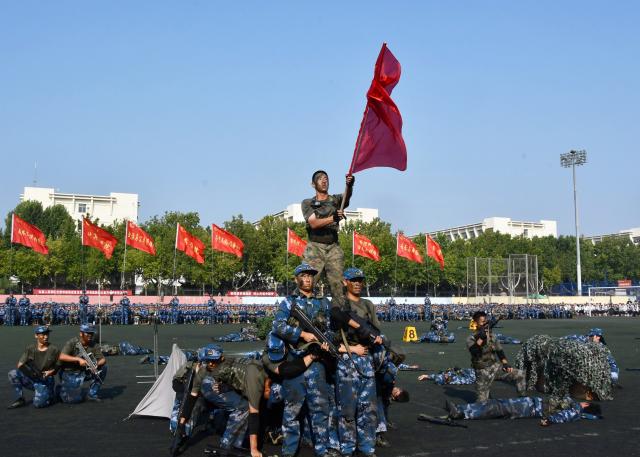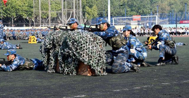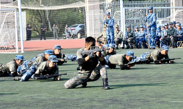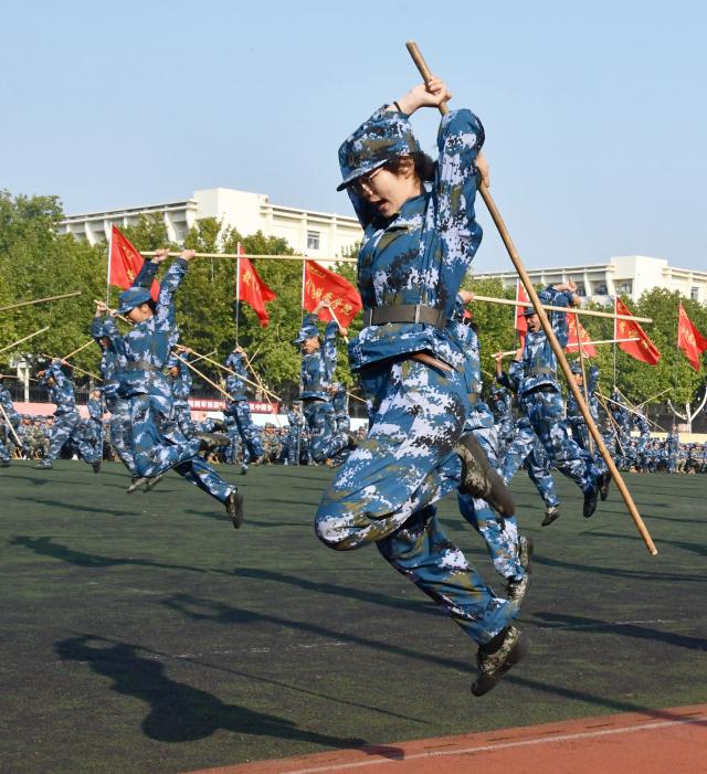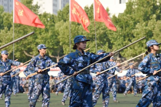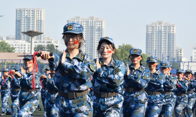 青春集结,沙场点兵。各方队先后进行了刺杀操、应急棍、捕俘拳、匕首操、战术等军事技能训练科目汇报表演。他们用坚定勇毅的目光、整齐划一的队伍、铿锵有力的步伐和澎湃嘹亮的口号,展现了聊大学子昂扬向上、奋发有为的精神风貌和勇立潮头、奋楫争先的豪情壮志,“请党放心,强国有我”是他们对党和国家最真情的告白。