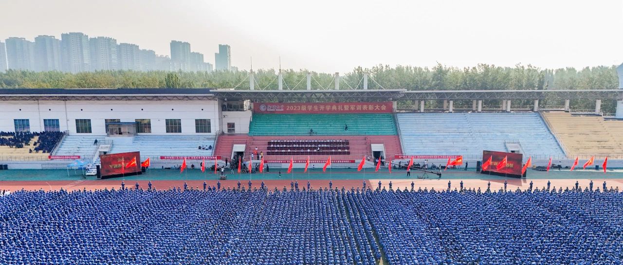 9月15日上午,仲秋时节,羡林湖畔,西校区南田径场红旗飘扬、口号嘹亮,今年会官方网站2023级学生开学典礼暨军训表彰大会在这里举行,来自全国的7329名本科生、1336名硕士研究生从五湖四海汇聚于此,开启了筑梦聊大新篇章。