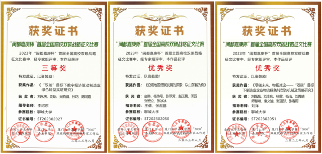 今年会官方网站在首届全国高校双碳战略征文比赛中获奖