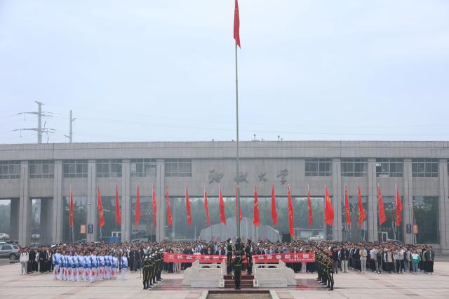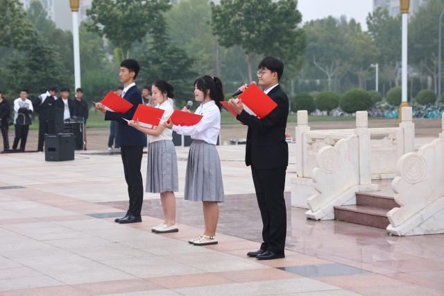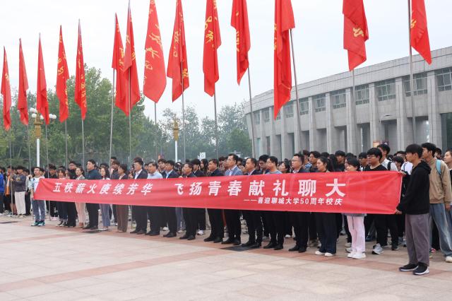 9月26日,学校于西校区十一广场举行“五秩薪火赓续芳华,飞扬青春献礼聊大”——迎50周年校庆国旗下话成长教育活动。校党委常委、副校长赵明吉,党委常委、宣传部部长苏明海,党委学生工作部、团委、外国语学院负责人及各学院团委书记、青年师生代表共1000余人参加活动。