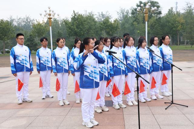 上午7时,英姿飒爽的国旗护卫队迈着铿锵有力的步伐,以昂扬的姿态护送鲜艳的五星红旗走向升旗台。伴随着激昂的《义勇军进行曲》,鲜艳的五星红旗缓缓升起,全体师生面向国旗行注目礼。