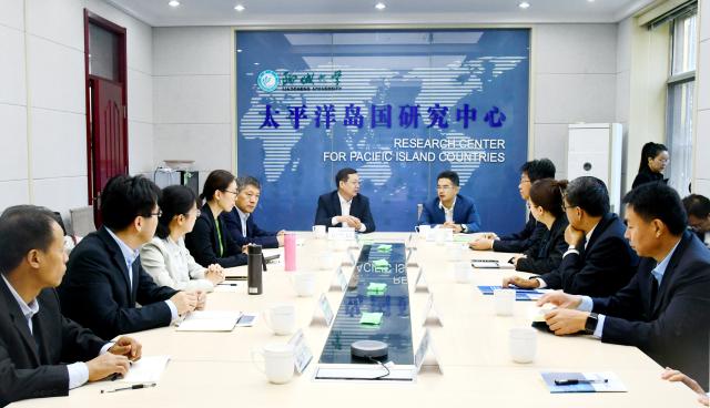 10月31日,生态环境部应对气候司对外合作交流处处长陈志华一行来校指导太平洋岛国研究中心和中国—太平洋岛国应对气候变化合作中心建设工作。党委副书记房增福陪同并主持座谈。