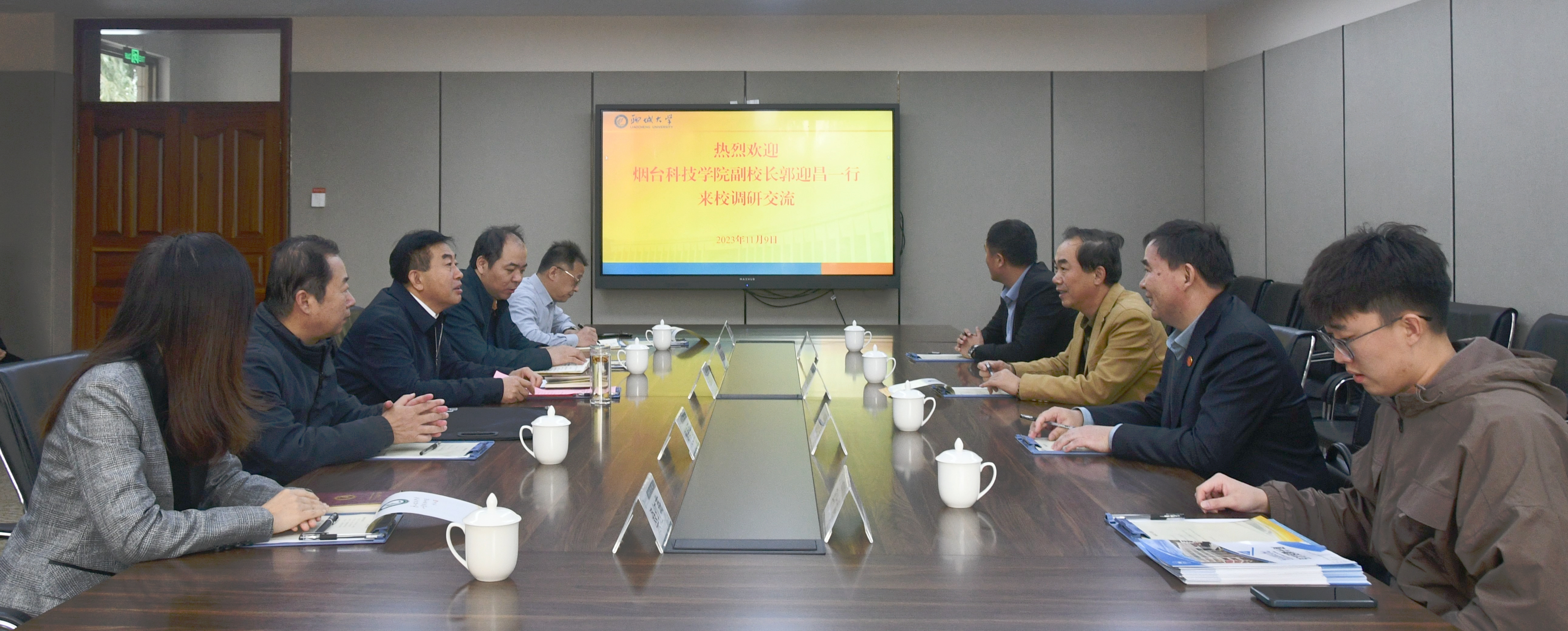 11月9日,烟台科技学院党委副书记、副校长郭迎昌一行来今年会调研交流。校党委常委、副校长李兆俊在东校区A111会议室会见了来访客人。