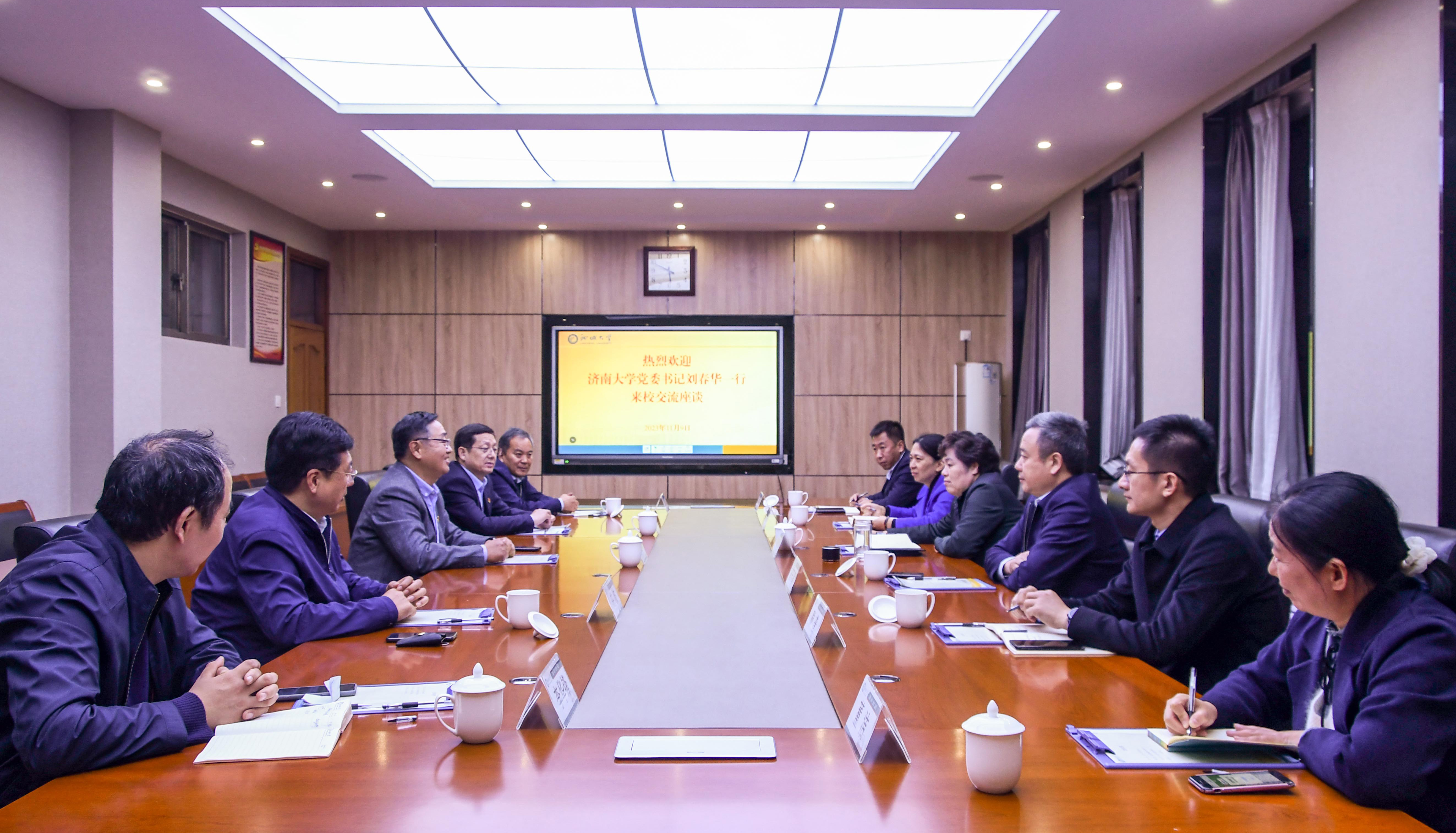 11月9日下午,济南大学党委书记刘春华一行来今年会调研。校党委书记关延平,党委副书记房增福,党委常委、组织部部长庄波与客人进行了座谈交流。
